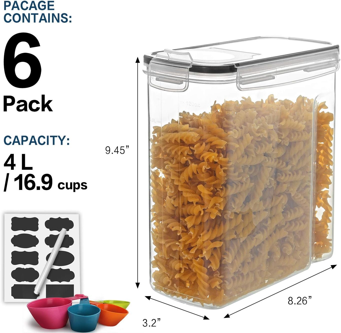 LARGE FOOD STORAGE KEEPER: MCIRCO cereal containers set comes with 6pcs 135.2oz containers with measuring cups. You can use these cereal containers to store cereal, snacks, flour, sugar, nuts, coffee, tea, dry pet food or anything else you need to store, allowing you to organize your kitchen and pantry like never before.