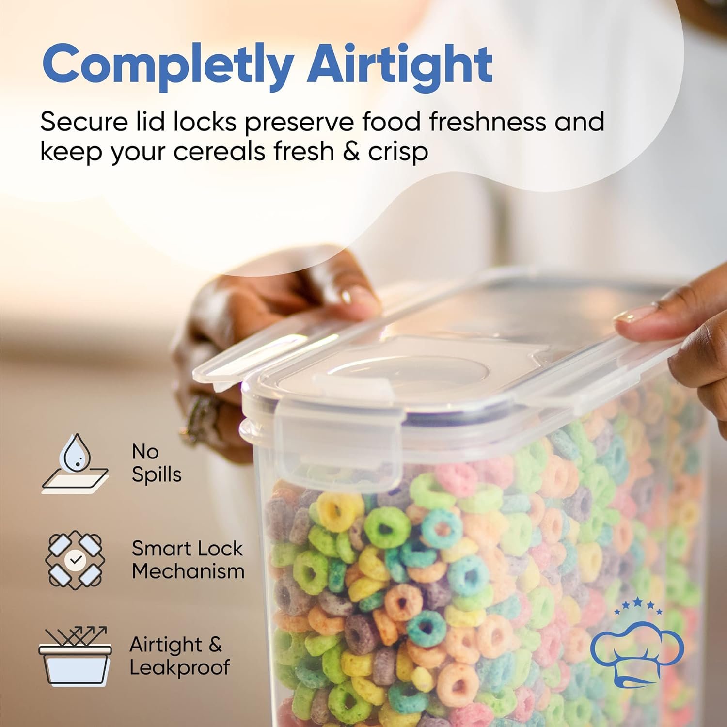 • Cereal Containers: Our cereal containers are designed to keep your cereals fresh and dry, with airtight lids and silicone sealants to keep moisture out.