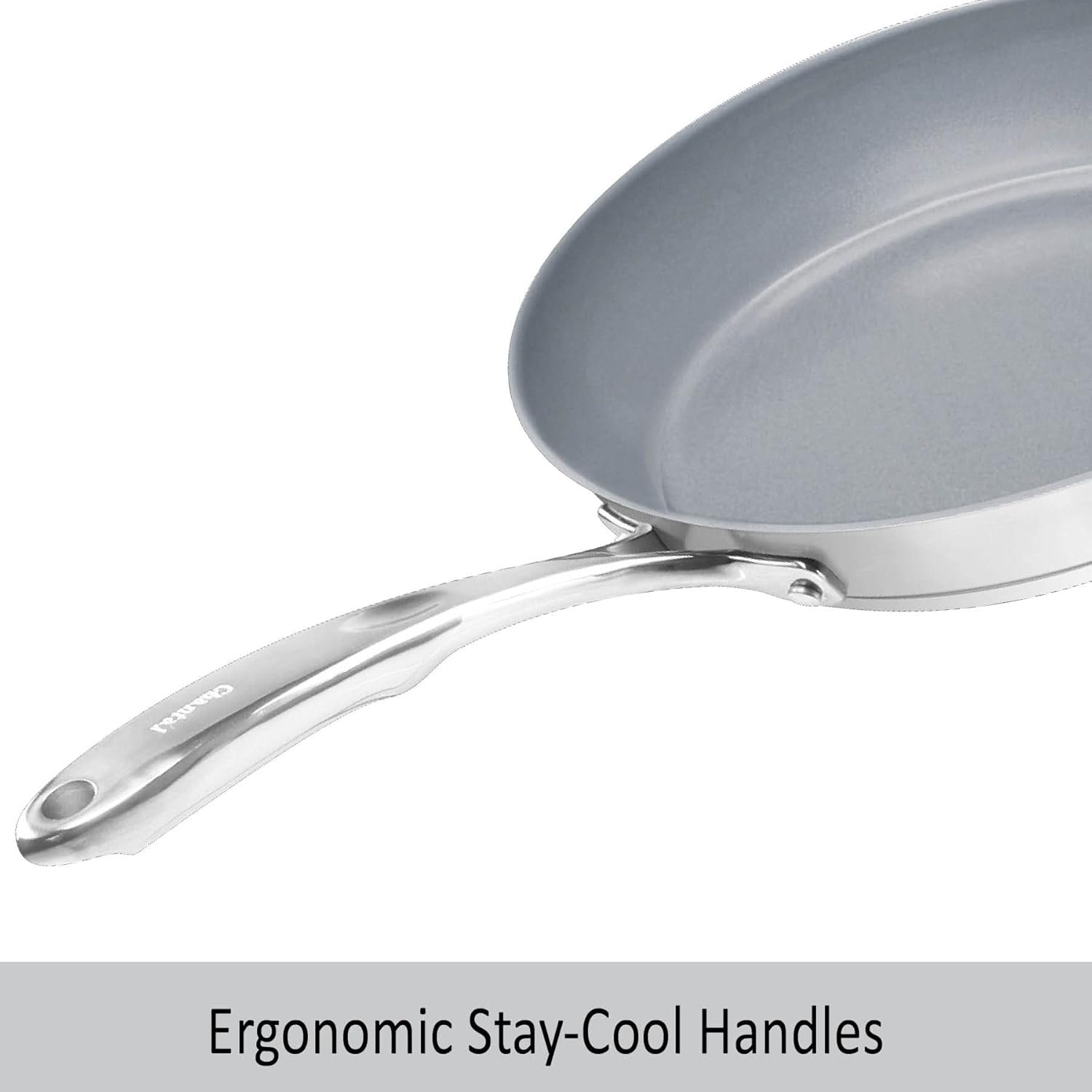 Home Kitchen Cookware Sets Chantal Induction 21 Steel 3-pc Pasta Set; includes 10″ ceramic NonStick Fry Pan & 6 qt Stainless Steel Stock Pot; Brushed Stainless Steel