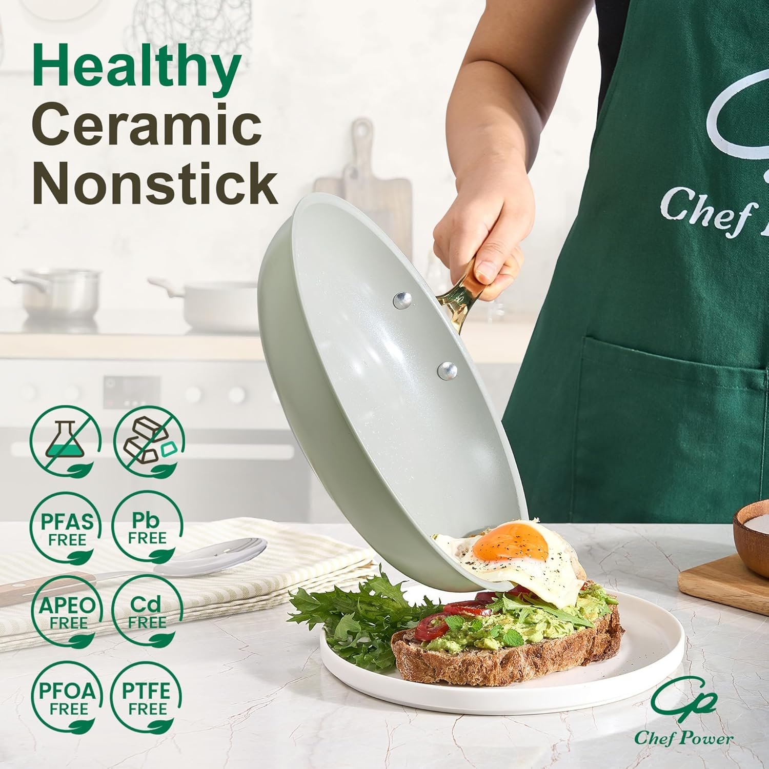 Experience the joy of cooking with Chef Power’s ceramic cookware set, designed to provide a healthy and non-toxic cooking experience. Our cookware is made from natural, stone-derived materials, free from Teflon, PFAS, PTFE, PFOA, lead, and cadmium, ensuring safer and healthier cooking for you and your loved ones.
