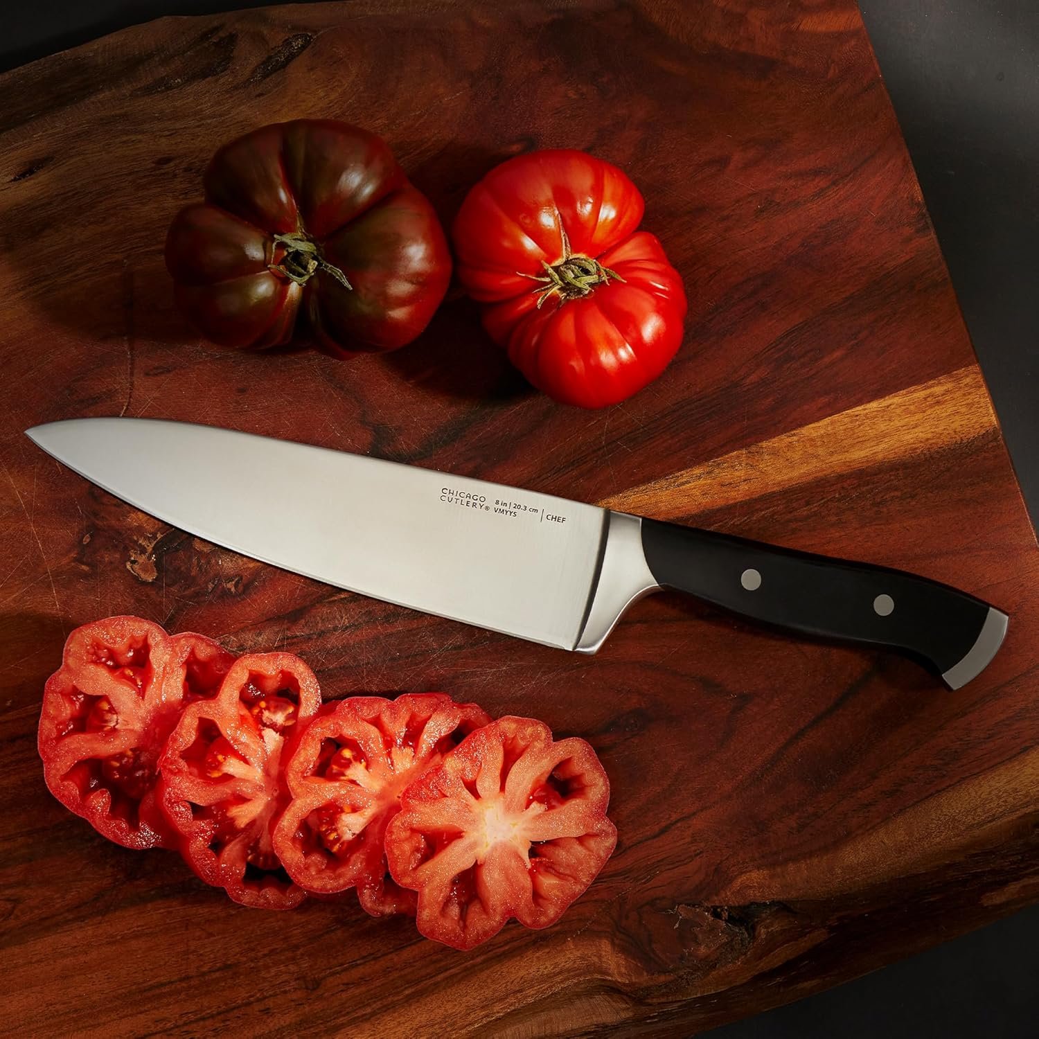 The Chicago Cutlery Armitage set is a comprehensive collection of high-quality knives designed to deliver precise cutting and comfortable handling. With its handsome design and exceptional performance, this set is perfect for any kitchen. The set includes a variety of knives, a sharpening steel, and a beautiful espresso-stained wood block for storage.