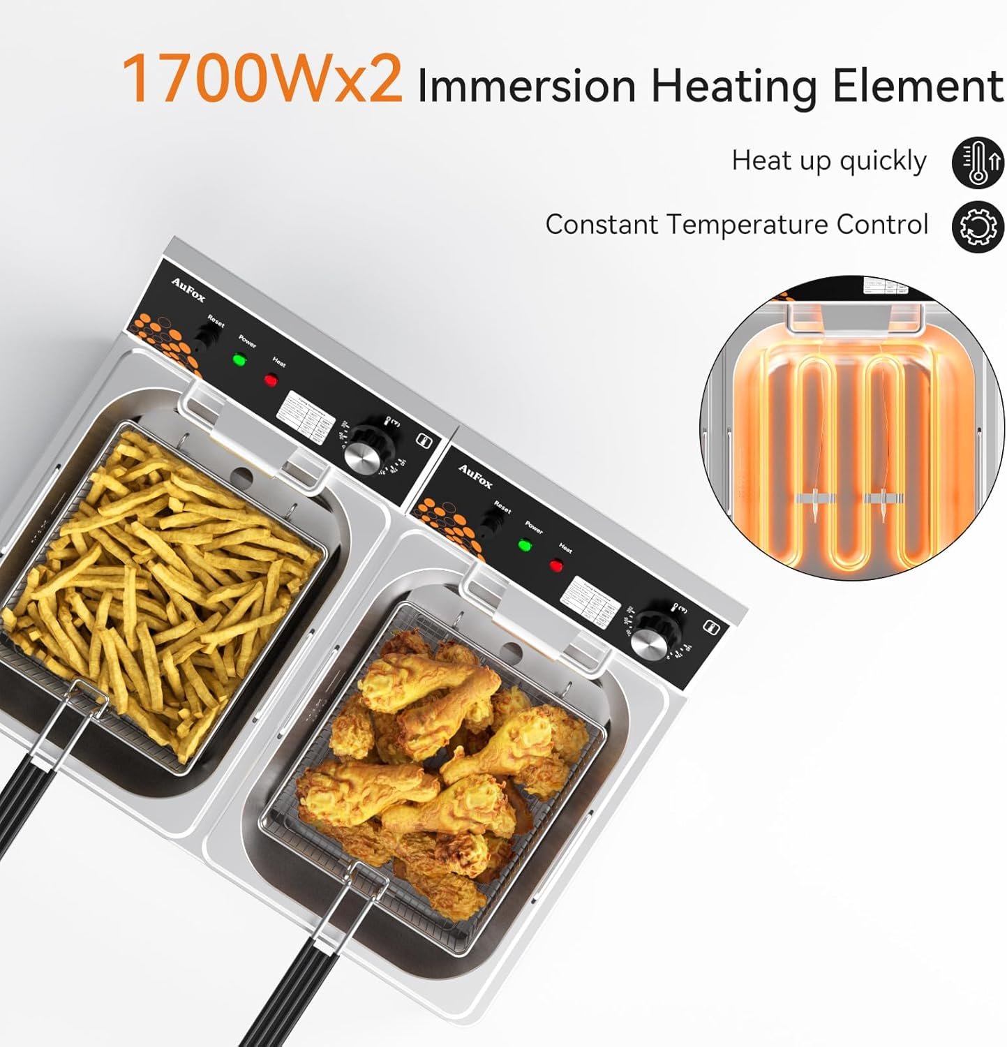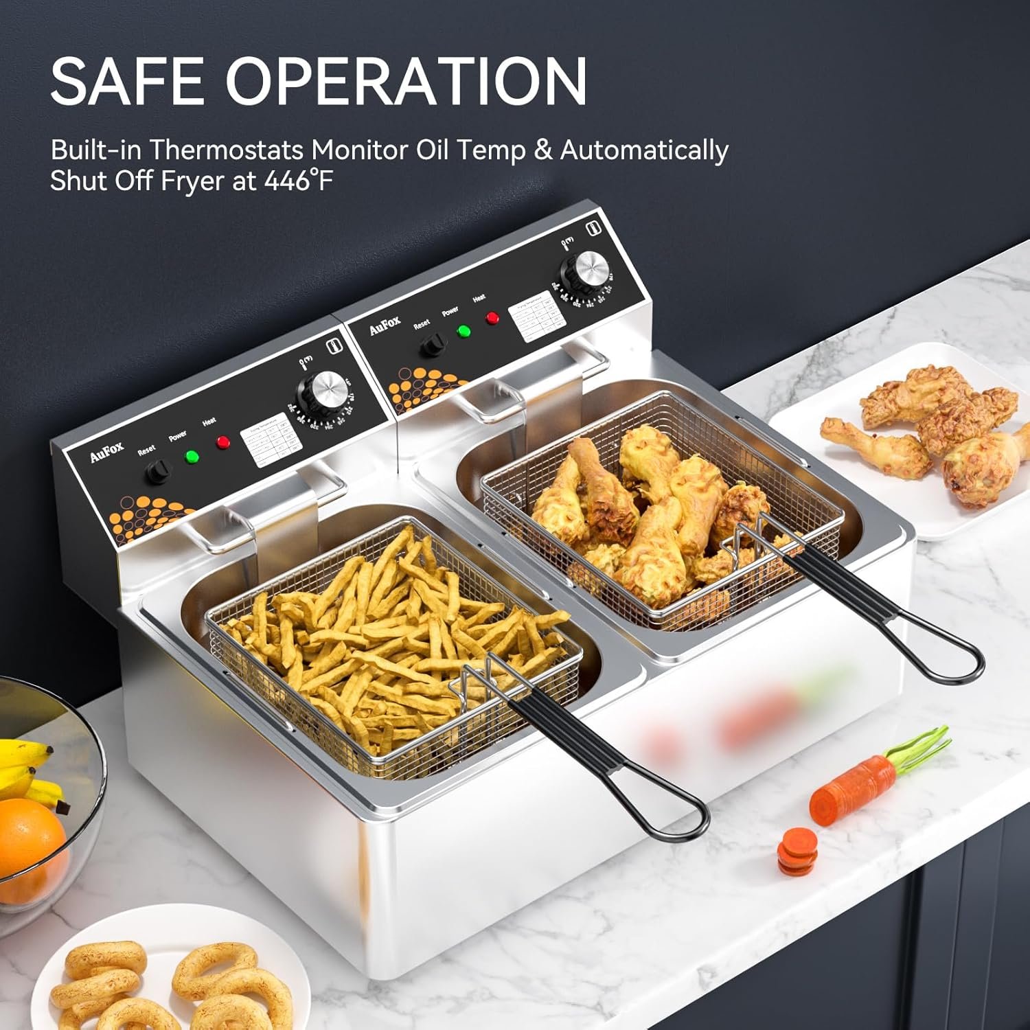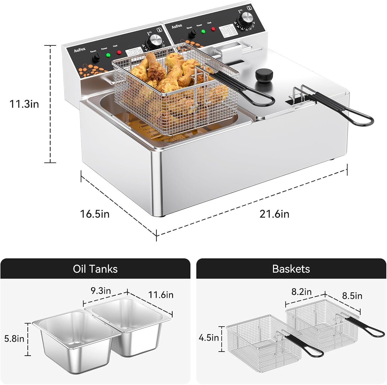 AuFox Commercial deep fryers are a great choice for commercial use, providing high-performance frying with precise temperature control and food-grade safety. With its durable and reliable construction, generous capacity, and easy cleaning, this deep fryer is perfect for snack bars, concession stands, or kiosks. Whether you’re frying chips, fish, chicken fingers, or doughnuts, AuFox Commercial deep fryers are sure to provide optimal frying results.