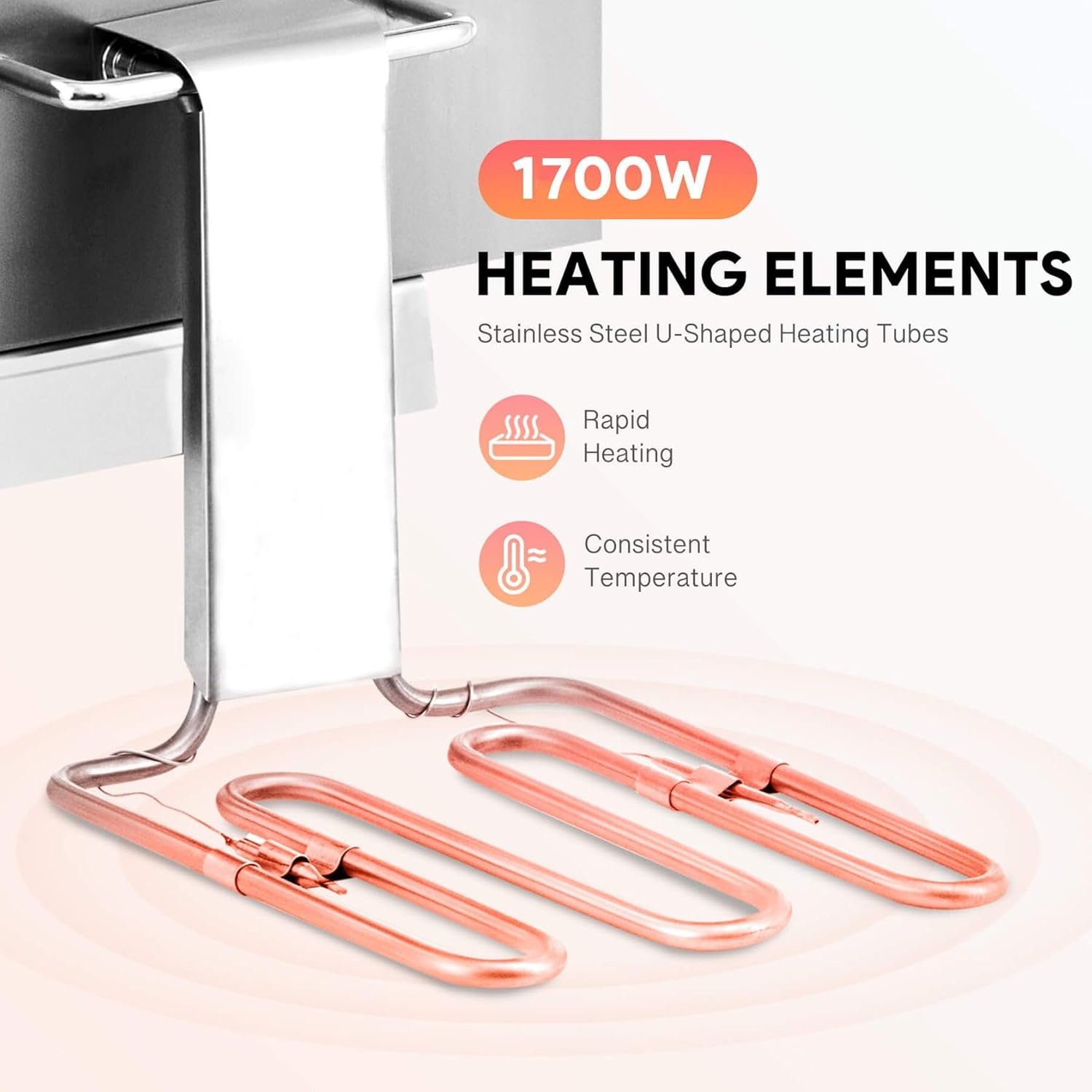 - Food-grade safety with thermostatic control and fail-safe top temperature cut out