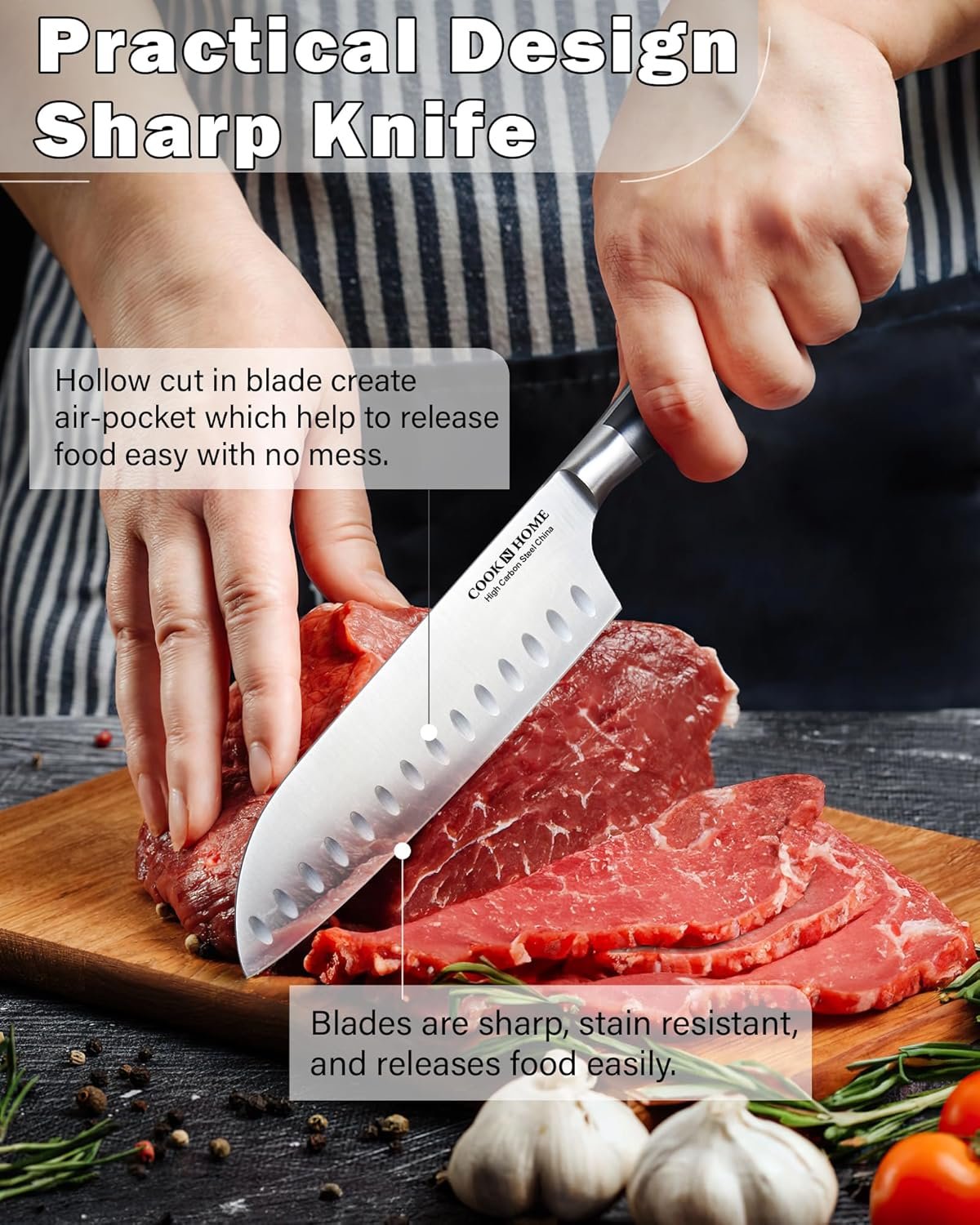 The knife set is designed to be durable and easy to clean. The high carbon steel used in the blades is not easy to break and ensures safe and durable performance. The set’s design focuses on providing long-lasting performance and ease of use, making it a valuable addition to any kitchen.