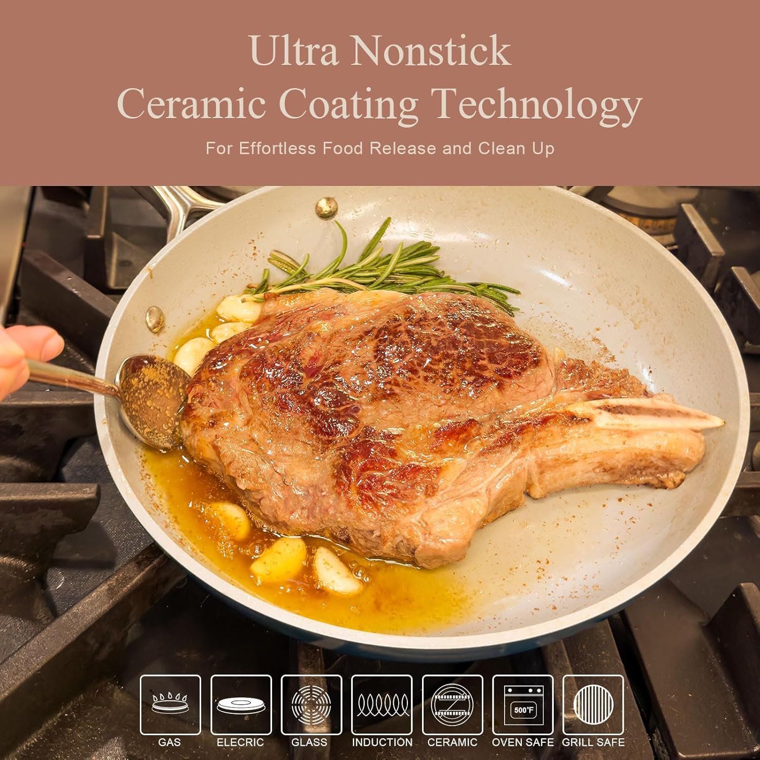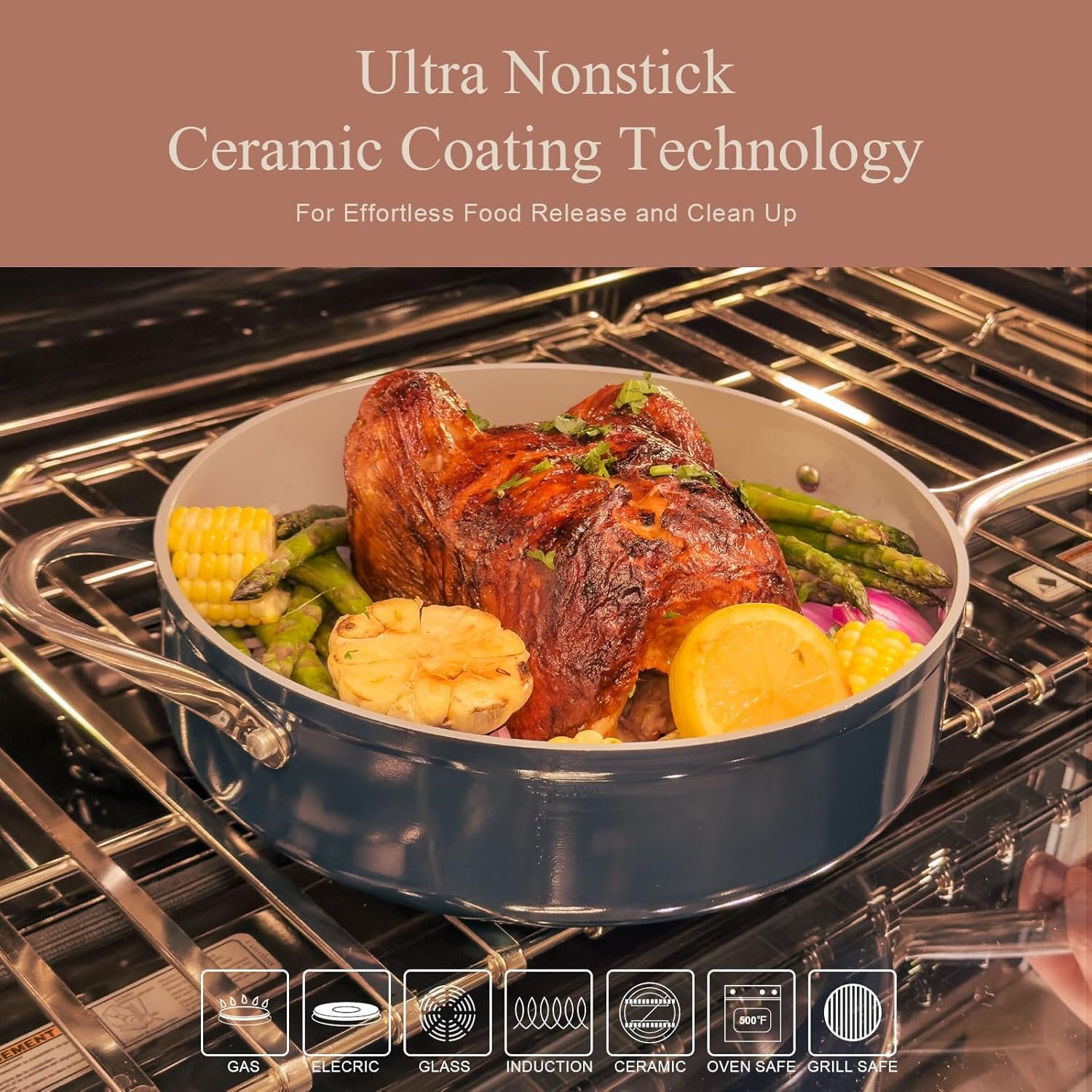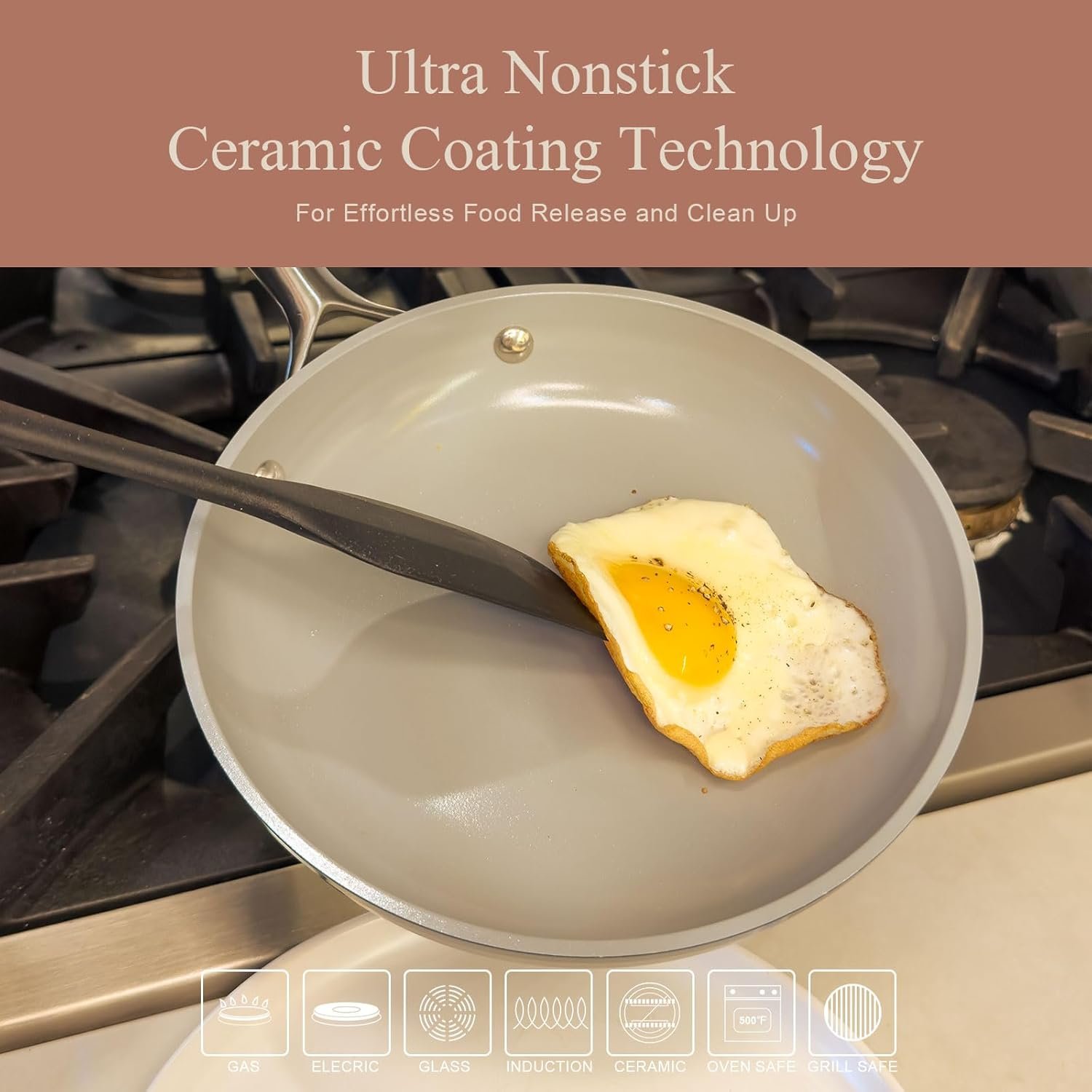 Healthier & Effortless Cooking is now a reality with our innovative cookware. Our ceramic nonstick surface is designed for easy food release, effortless cleaning, and proven safety with zero chemical release even at high temperatures.