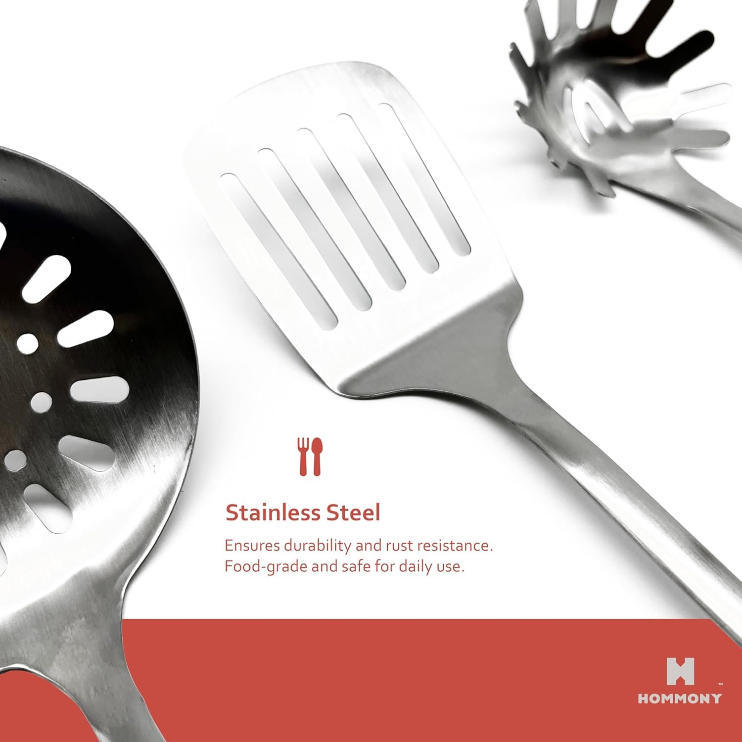 Premium stainless steel construction ensures durability and rust resistance, delivering long-lasting performance. Food-grade and safe for daily use, these utensils won’t dent, crack, or chip, making them a good choice as your cooking helper.