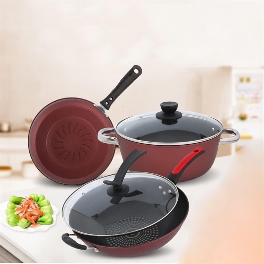 This cookware set is designed to provide a versatile and convenient cooking experience. Made from aluminum alloy, it is durable and resistant to scratches. The set includes a range of pots and pans, making it suitable for various kitchen and stove configurations.