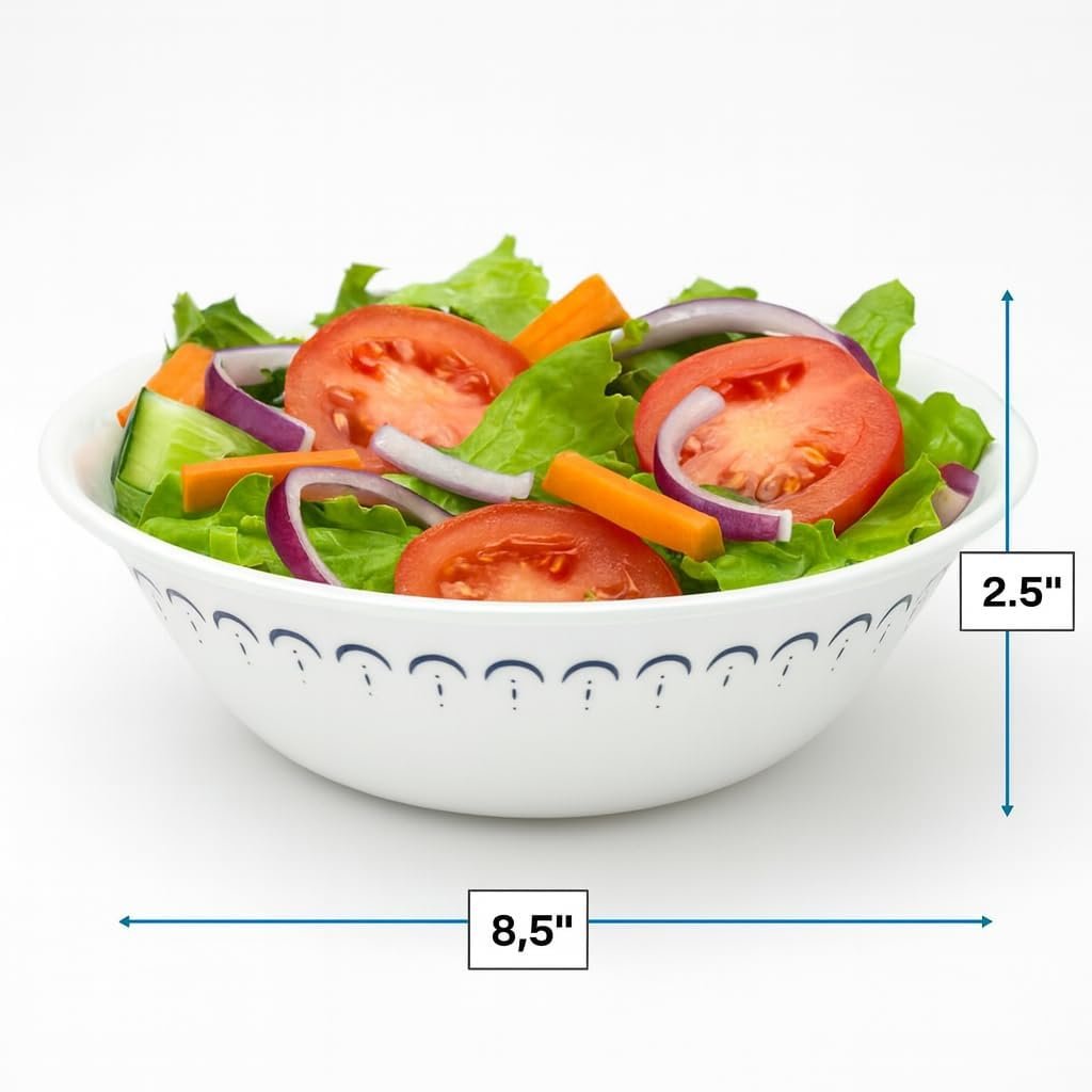 This Corelle-Livingware Bowl is perfect for entertaining or casual dining. Its elegant design makes it simply enchanting, adding a touch of sophistication to any meal. With outer dimensions of 8 1/2″ x 8 1/2″ x 2 1/2″ for each bowl, it’s the ideal size for serving a variety of dishes.
