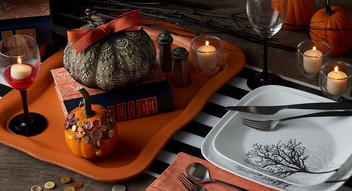 • Classic Style: The black and gray tree silhouettes add a touch of style to your eating experience, making your dinnerware a topic of conversation.