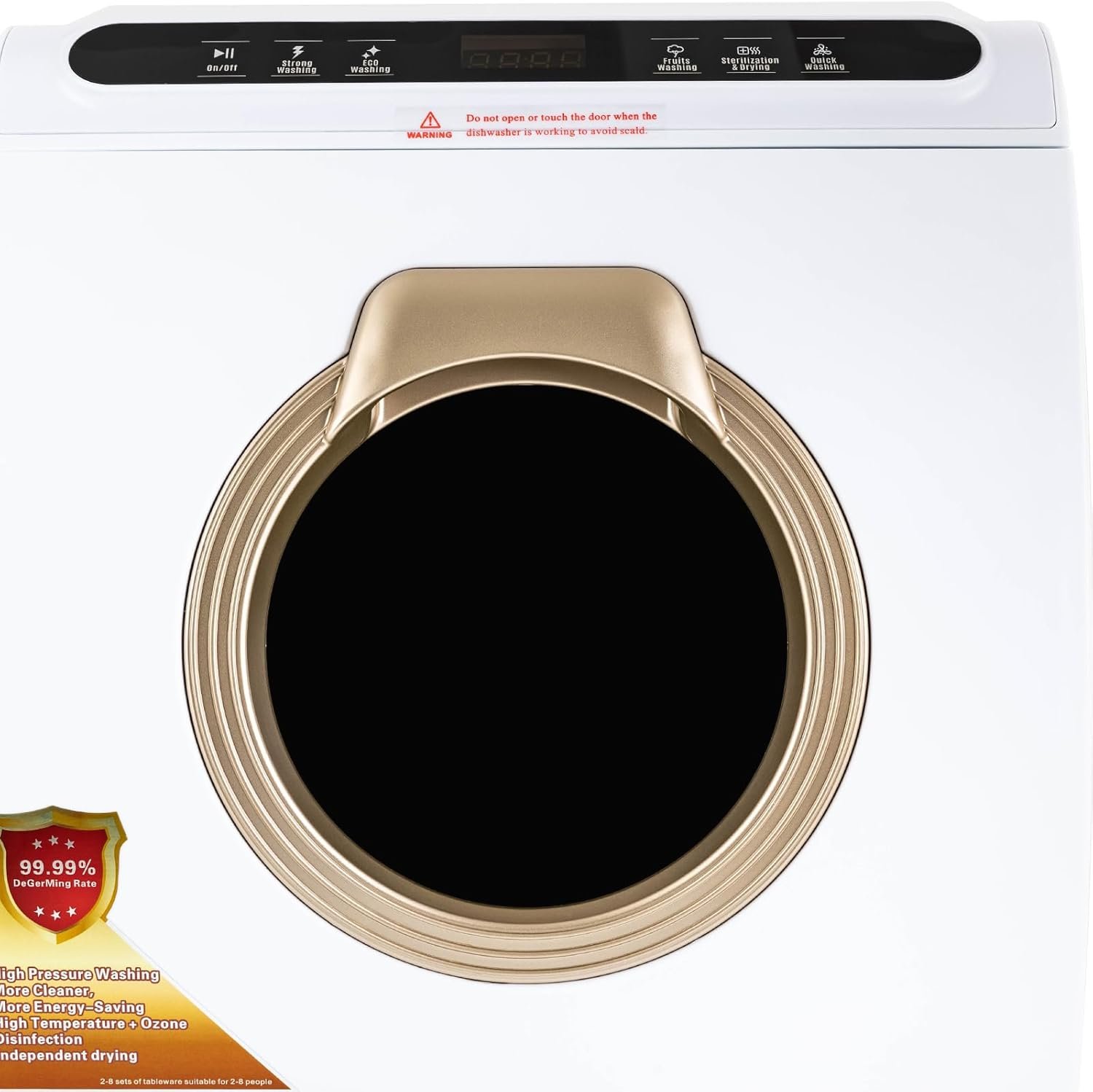 The countertop dishwasher is a compact and efficient appliance designed to make cleaning dishes easy and convenient. With its powerful 900W motor and 5 wash cycles, it can quickly transform greasy dishes into sparkling cleanliness. The dishwasher features a 6-hole upper spray arm and an 11-hole lower spray arm for 3D rinsing, ensuring that all dishes are thoroughly cleaned.