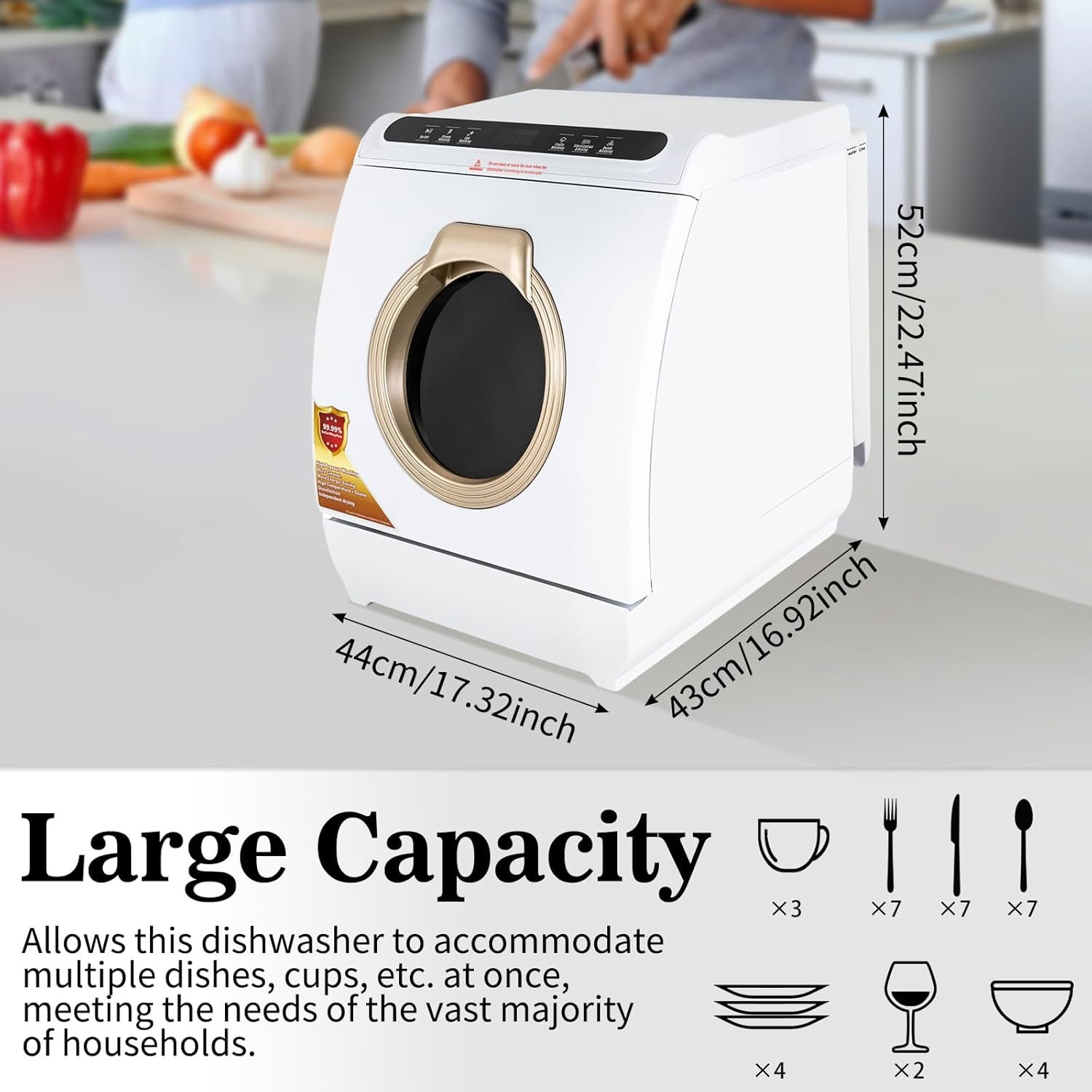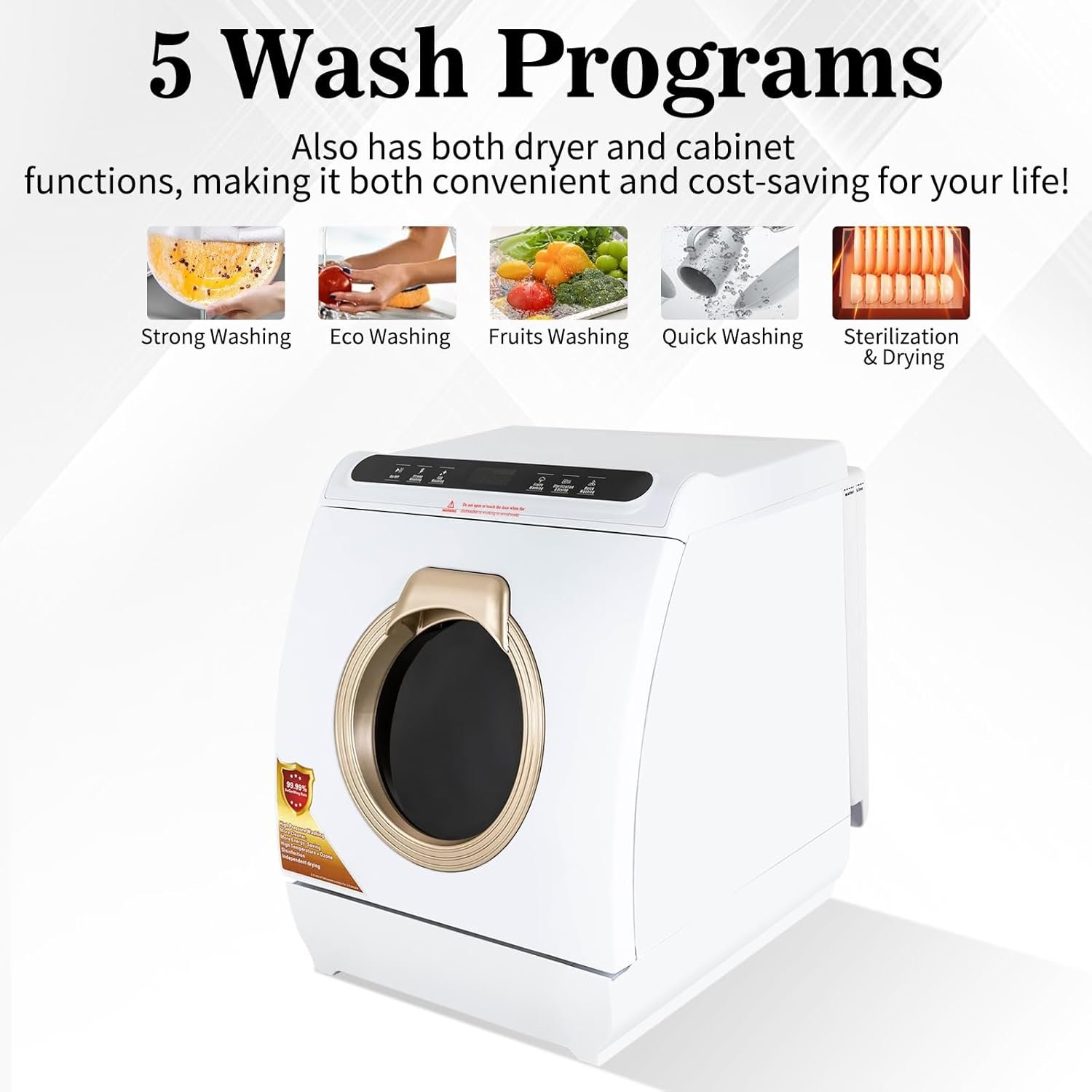 – 3-in-1 function as a countertop dishwasher, dryer, and cabinet