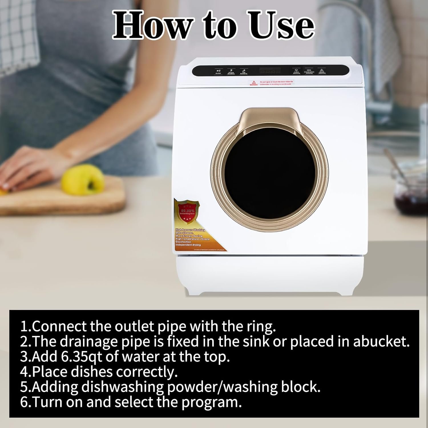 Portable Dishwasher Countertop, Countertop Dishwasher With Water Tank, Counter Top Dishwasher With 5 wash Programs, It can also be connected to the tap. For apartments, dorms, RVs.