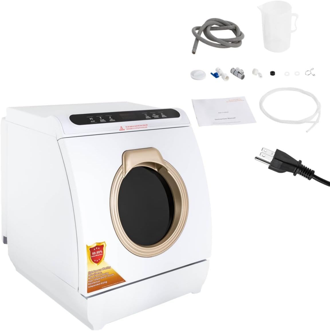This portable dishwasher is made of high-quality stainless steel and ABS material, providing an excellent 360-degree 5 washing functions and the ability to dry and store dishes. It is very easy to use, saves time, saves water, and is a kitchen helper in your home.