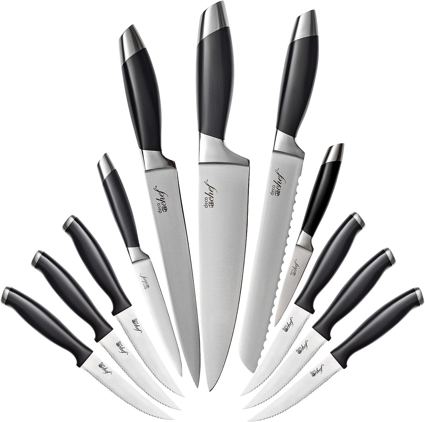 Home Kitchen Cookware Sets Cuisinart 77-11G Chef’s Classic Stainless 11-Piece Cookware Set Bundle with Deco Chef Gourmet 12 Piece Stainless Steel Knife Set with Storage Block