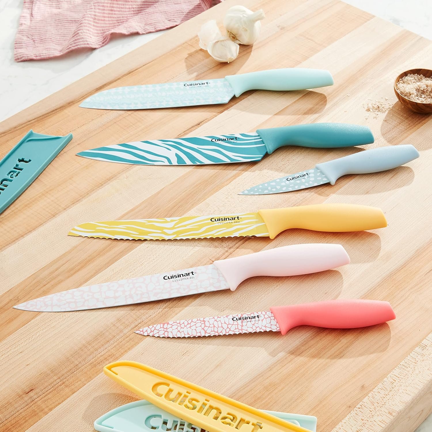 The 12pc Animal Print Knife Set offers several benefits, including easy slicing and reduced risk of cross-contamination. The non-stick coating and stainless steel blades ensure a smooth cutting experience, while the color coding system helps to keep your food preparation organized. The set also includes blade guards for each knife, providing an extra layer of safety for you and your family.