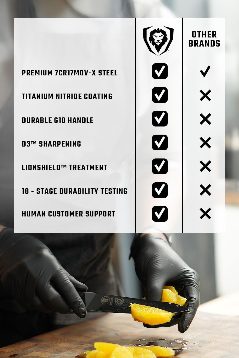 Designed to be as sleek, aggressive, and muscular looking as they are effective, the Dalstrong Shadow Black Series stands out. These knives are not just cutting-edge, high-performance tools; they make a bold statement about your style as a chef. Essential additions to any butcher block knife set, they elevate both your culinary skills and kitchen aesthetic.