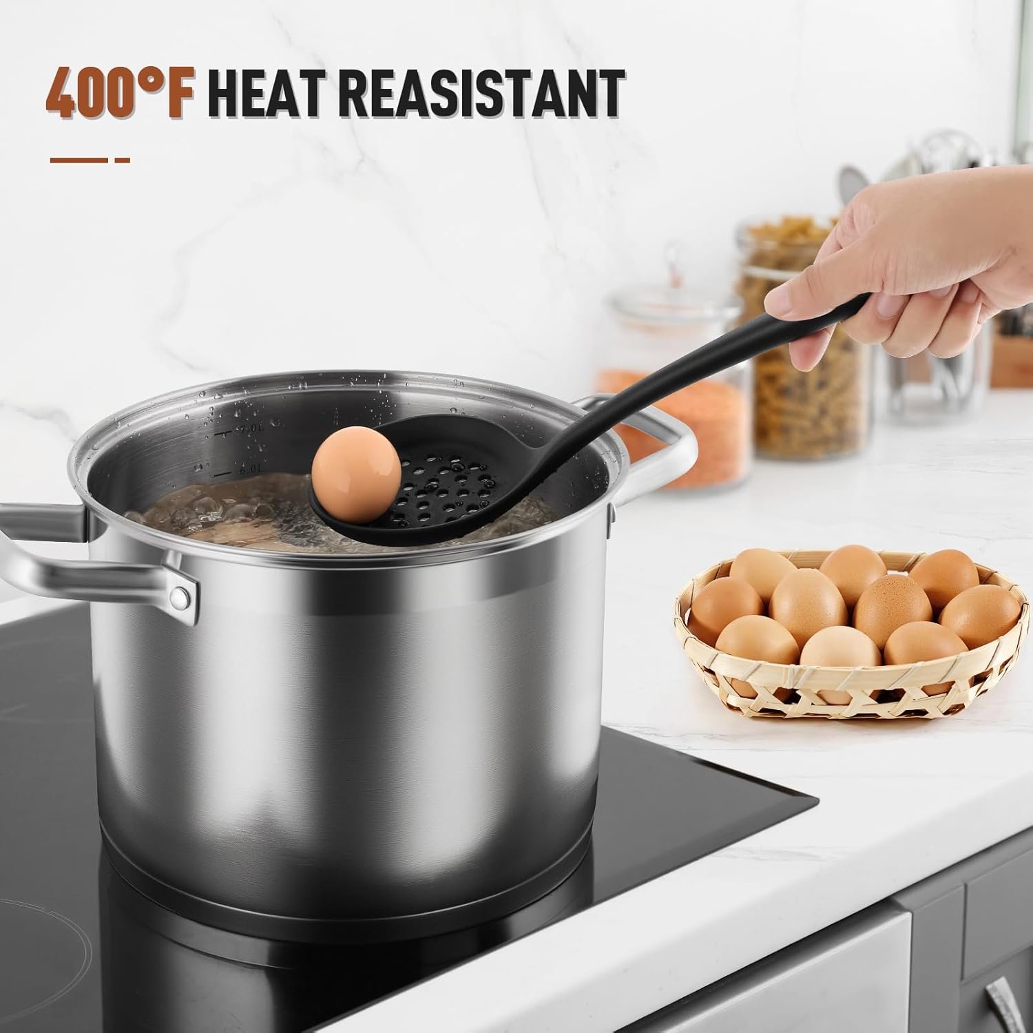 - High-heat resistant up to 400°F for frying and baking