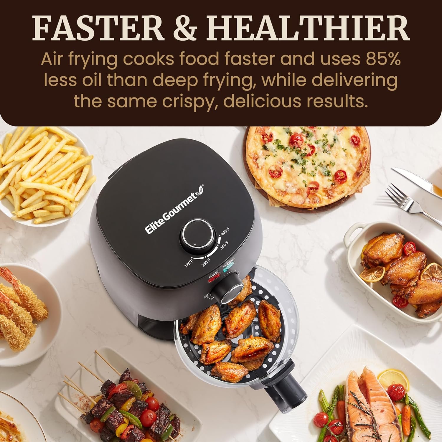 The Elite Gourmet 2.4Qt Liter Glass Air Fryer is designed to provide a wide range of cooking options, including: