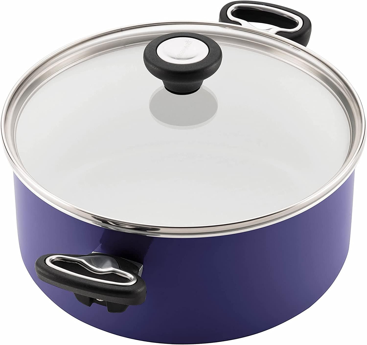 The sturdy aluminum construction heats fast and evenly, and the colorful porcelain enamel exteriors are easy to clean. The cookware set is designed to be durable and long-lasting, with a modern boost of style and nonstick cooking performance.