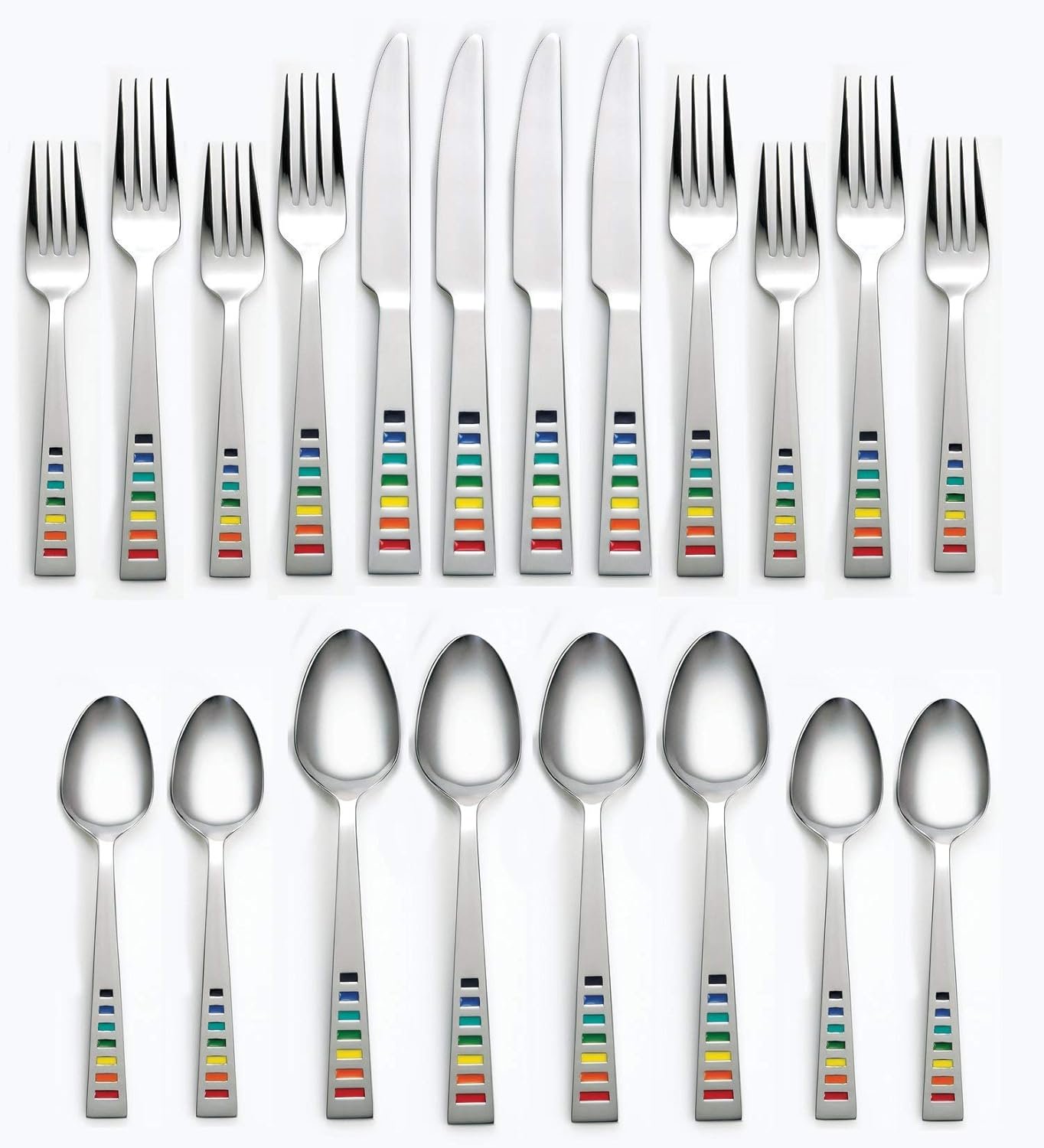 Home Flatware Serving Sets Fiesta – 641020R Fiesta Celebration 20-Piece Flatware Silverware Set, Service for 4, Stainless Steel, Includes Forks/Knife/Spoons