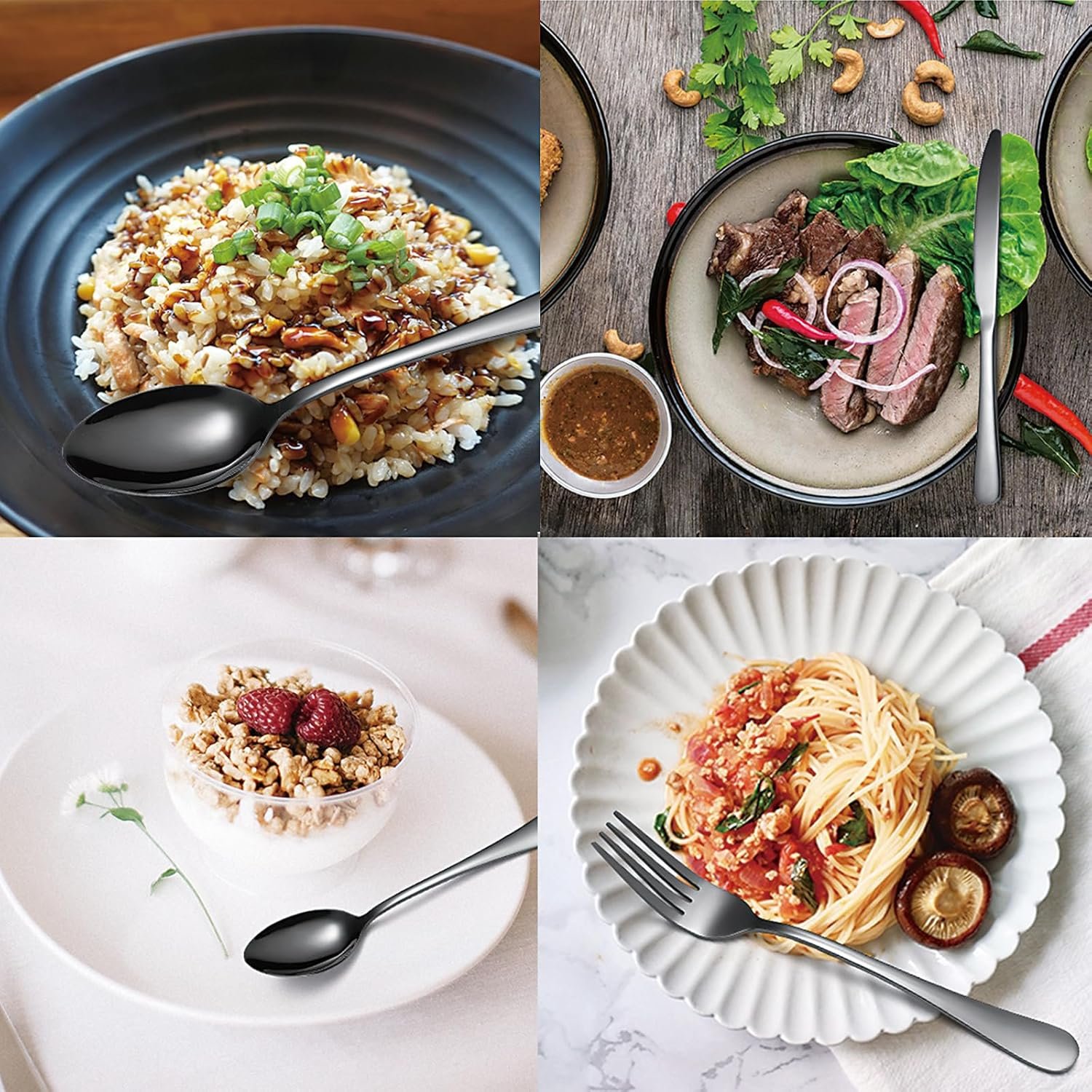 Our utensil set and knife set are made of high-quality stainless steel, ensuring durability and ease of use. The sharp blade of the knife set allows for easy cutting of food without harming the mouth.