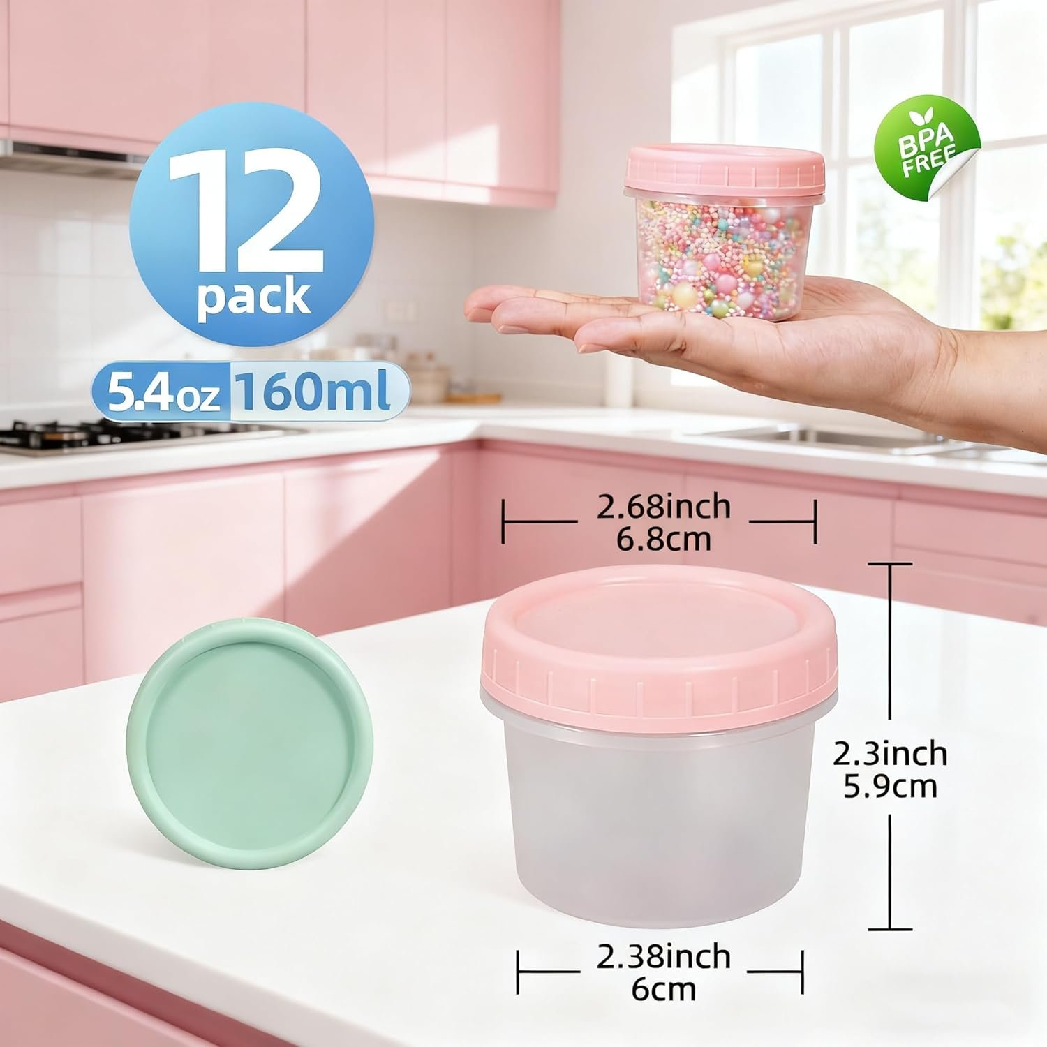 Keep your food fresh and organized with our 12-pack 5.4oz food storage containers with twist lids. Made of BPA-free food-grade plastic, these containers are perfect for storing soups, stews, sauces, overnight oats, and leftovers. They are ideal for meal prep, freezer storage, or on-the-go meals.