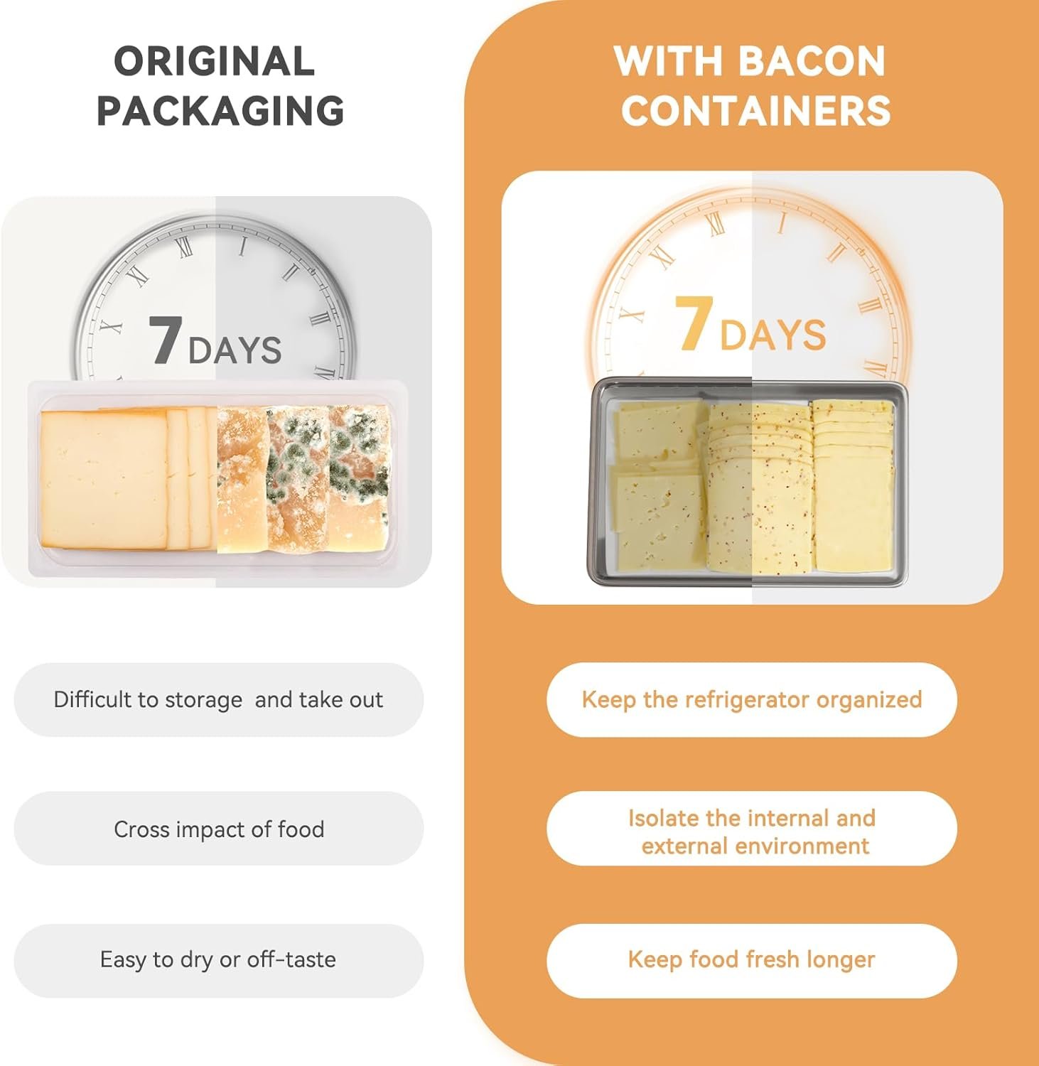 : Store your bacon, yogurt, and other dairy products in our specially designed containers.