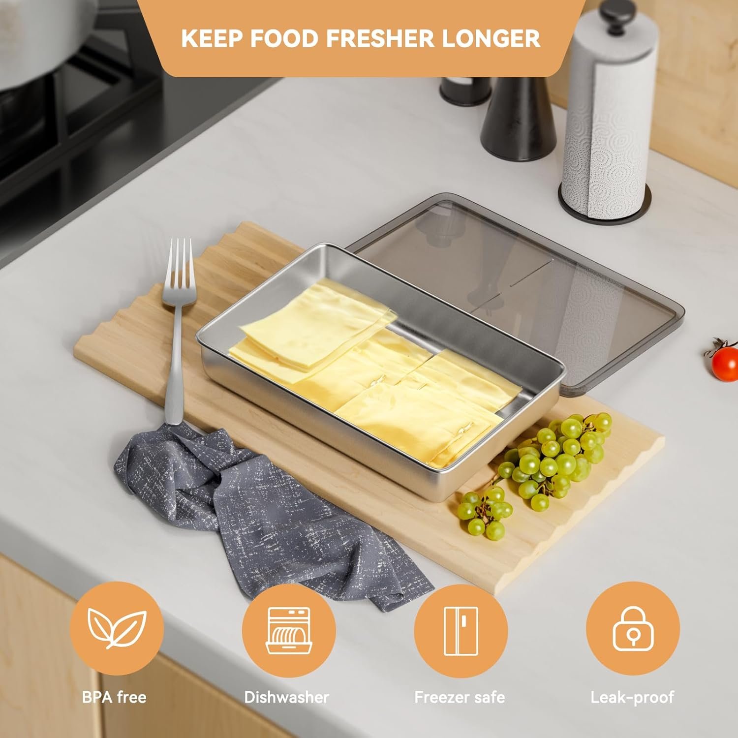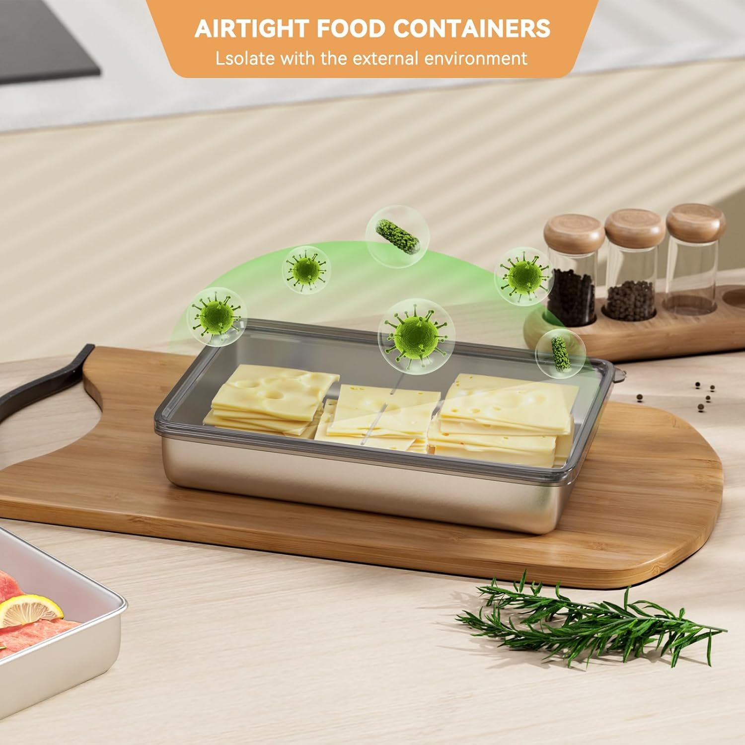 Our products are made from high-quality materials, including stainless steel and plastic, to ensure they are safe for use with food and durable. The deli meat containers feature an improved sealing environment with a raised pattern at the bottom to minimize contact between the food and the container’s base, keeping your food fresh for a longer period. The airtight seal prevents gas exchange between the container and the refrigerator, keeping your food fresh and preventing environmental influences from affecting preservation.