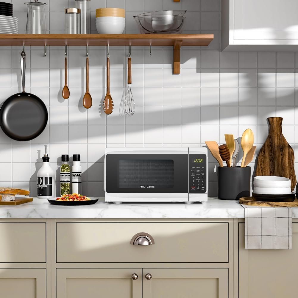 Home Microwave Oven Frigidaire Countertop Microwave – Digital Control Panel – 6 Auto Cooking Settings – 10 Power Levels – Child Safety Lock – 0.7 Cu. Ft., White