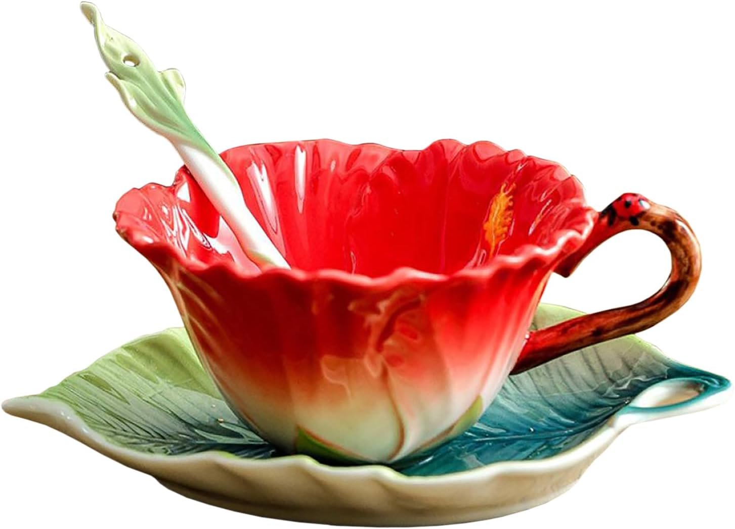 • Unique Design: The flower-shaped mug and leaf-shaped saucer add a touch of nature and whimsy to any coffee or tea time, making it stand out from standard, plain sets.