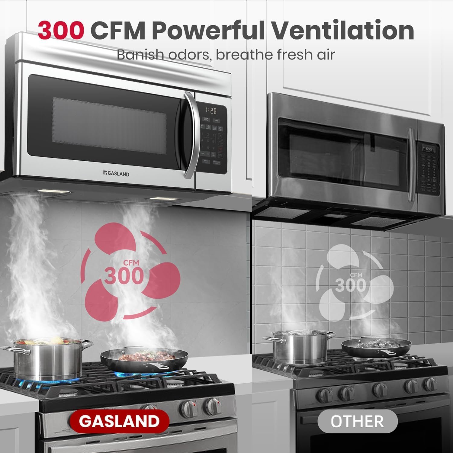 GASLAND 30 Inch Over-the-Range Microwave Oven, 1.7 Cu.Ft Over Stove Microwave, 1000W with 10 Power Levels, Sensor & One-Touch Cooking, 300 CFM Venting, LED Cooktop Light, Black Kitchen Microwave
