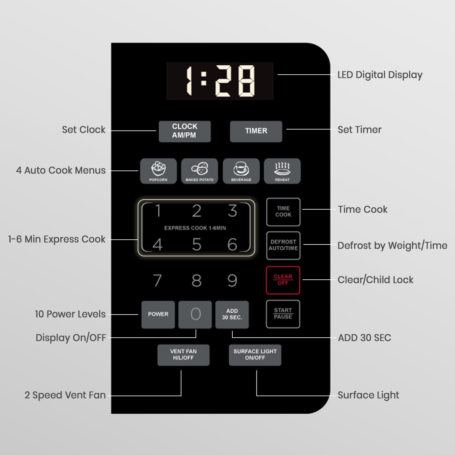 • 1000W Power with Precision Cooking: 1000 watts of power and 10 adjustable cooking levels for quick reheating to full cooking, including auto defrost by time or weight for even results.