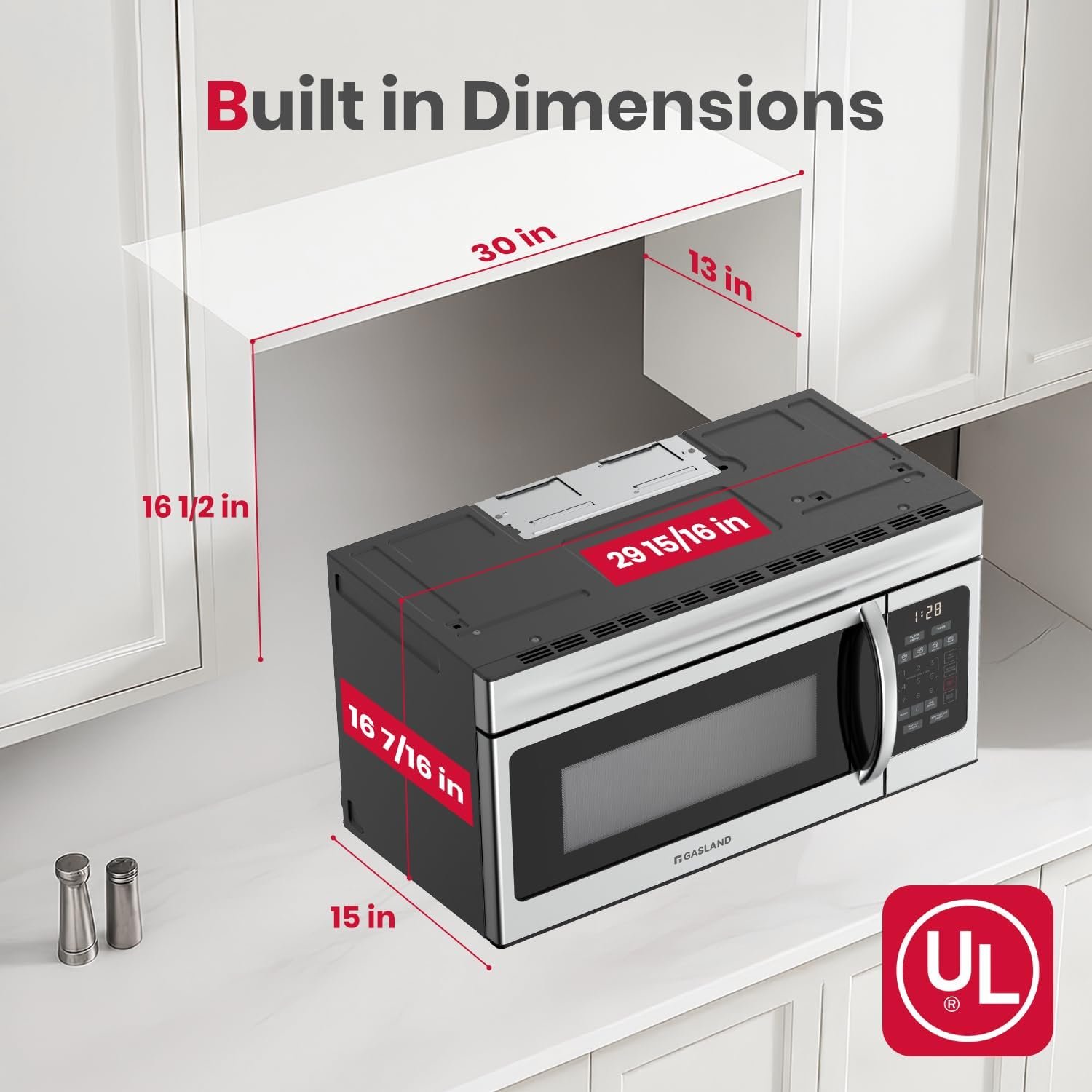 Home Microwave Oven GASLAND 30 Inch Over-the-Range Microwave Oven, 1.7 Cu.Ft Over Stove Microwave, 1000W with 10 Power Levels, Sensor & One-Touch Cooking, 300 CFM Venting, LED Cooktop Light, Black Kitchen Microwave