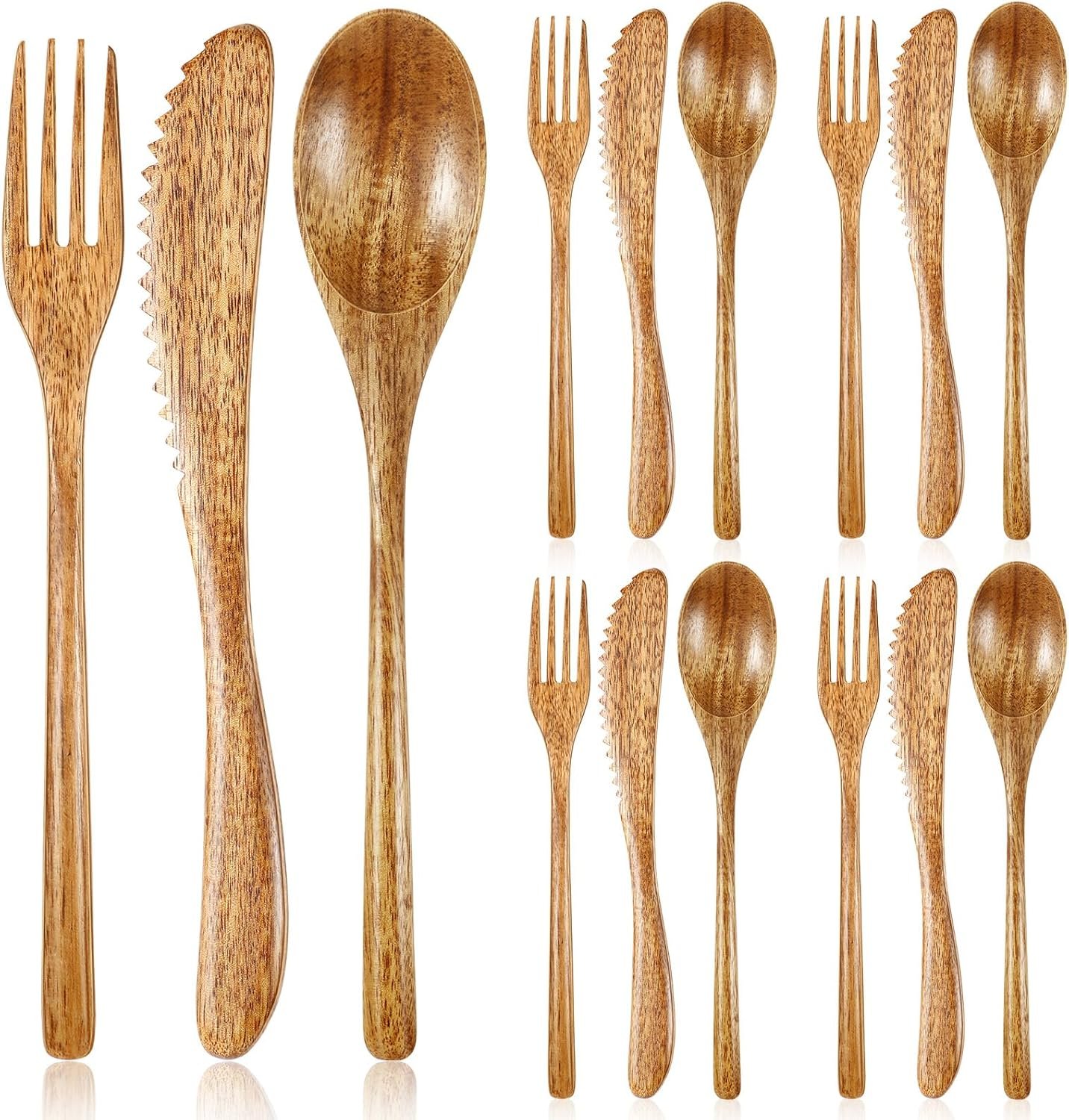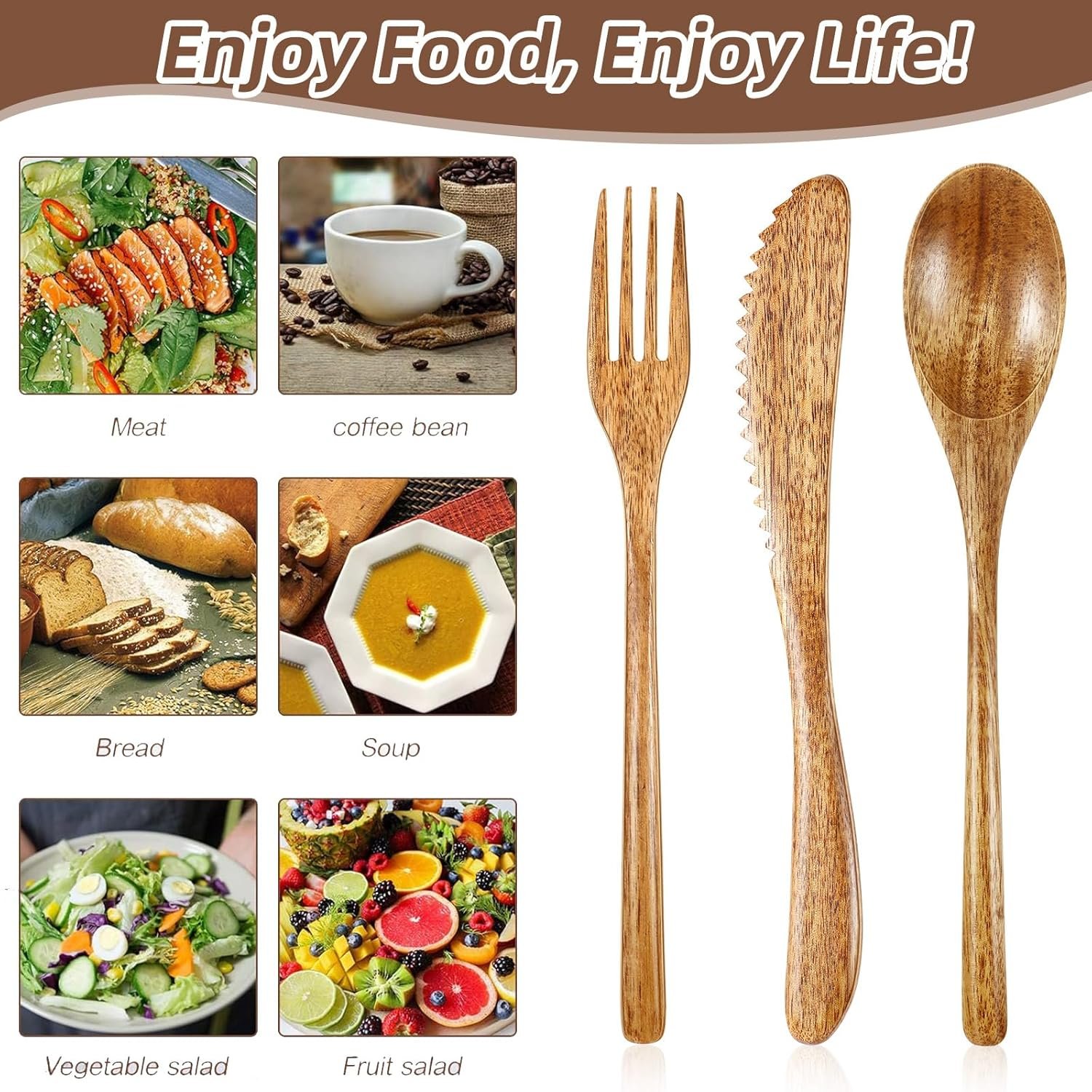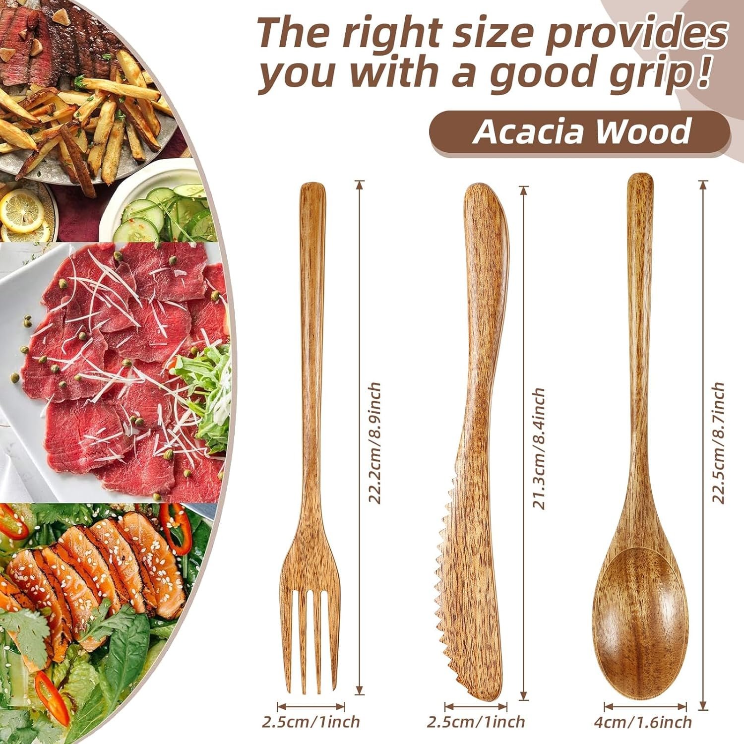 Geiserailie Wooden Utensils for Eating Wooden Spoon Fork Knife Cutlery Set Kitchen Wood Dinner Flatware Tableware Set Includes Spoon, Fork, Knife