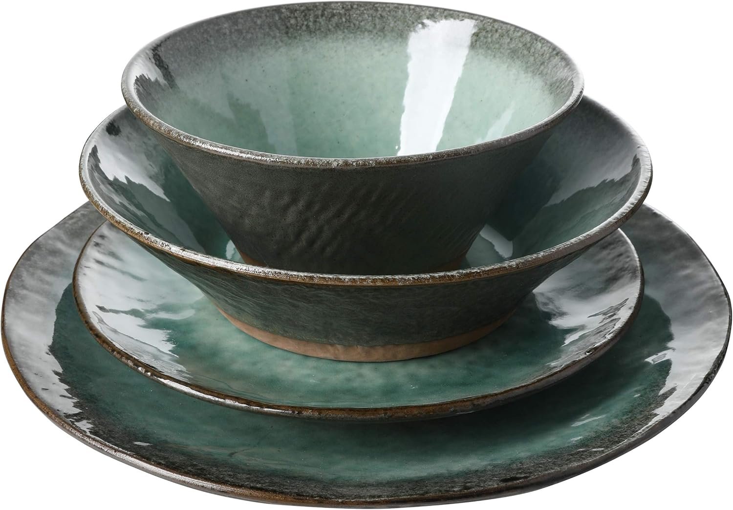 The Gibson Elite green Lantern 16-Piece double Bowl dinnerware set is a perfect choice for those looking to bring a sense of elegance and contemporary fashion to their table. With its unique reactive glaze finish, durable stoneware construction, and versatile set composition, it is an excellent addition to any home.