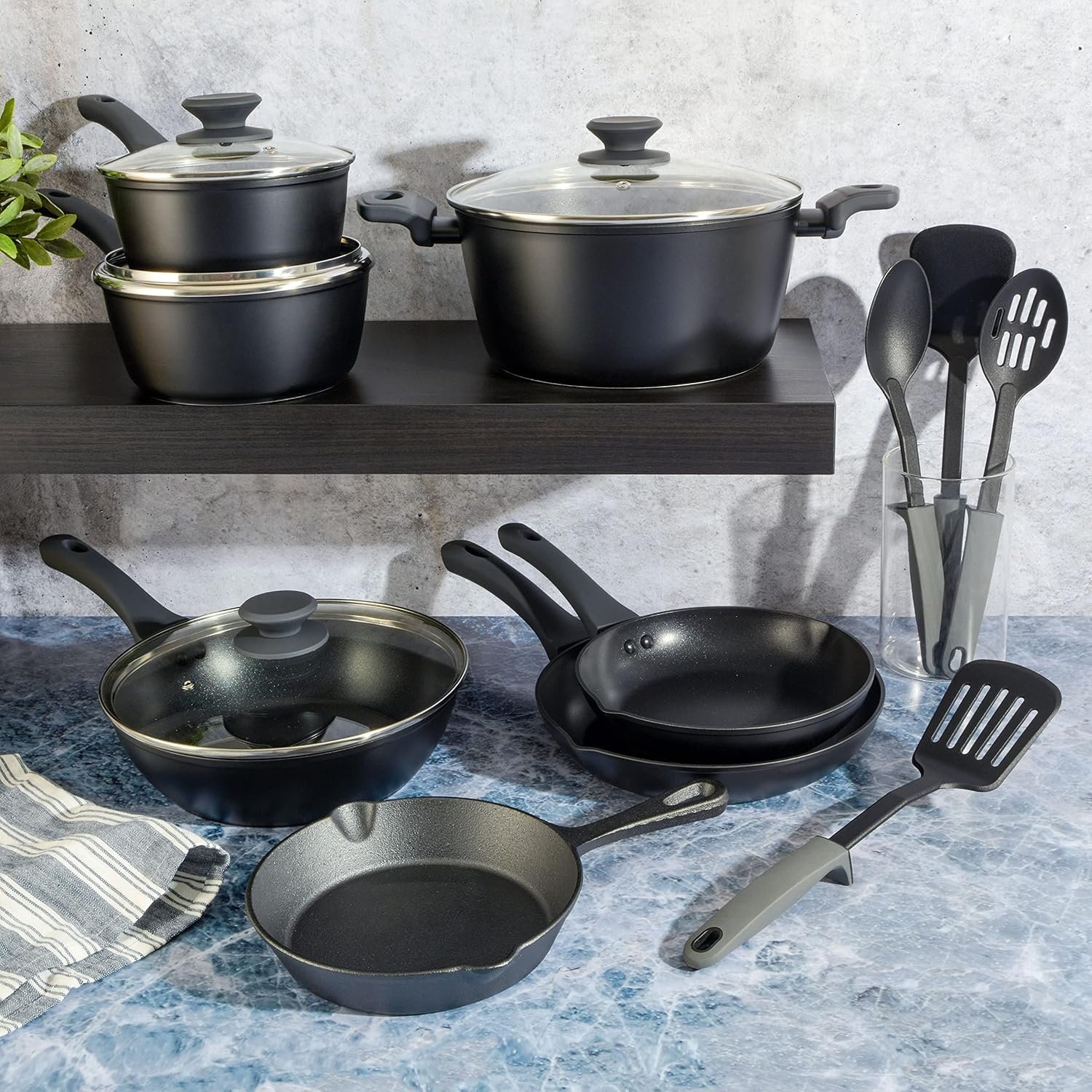 Gibson Soho Lounge 15-Piece Aluminum Cookware Set