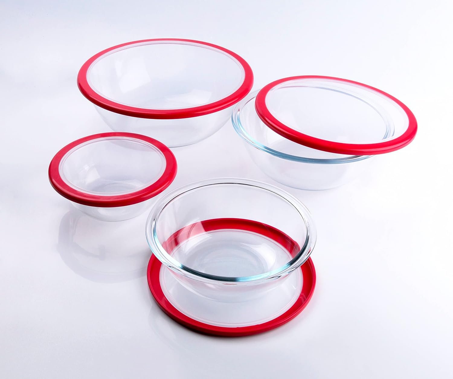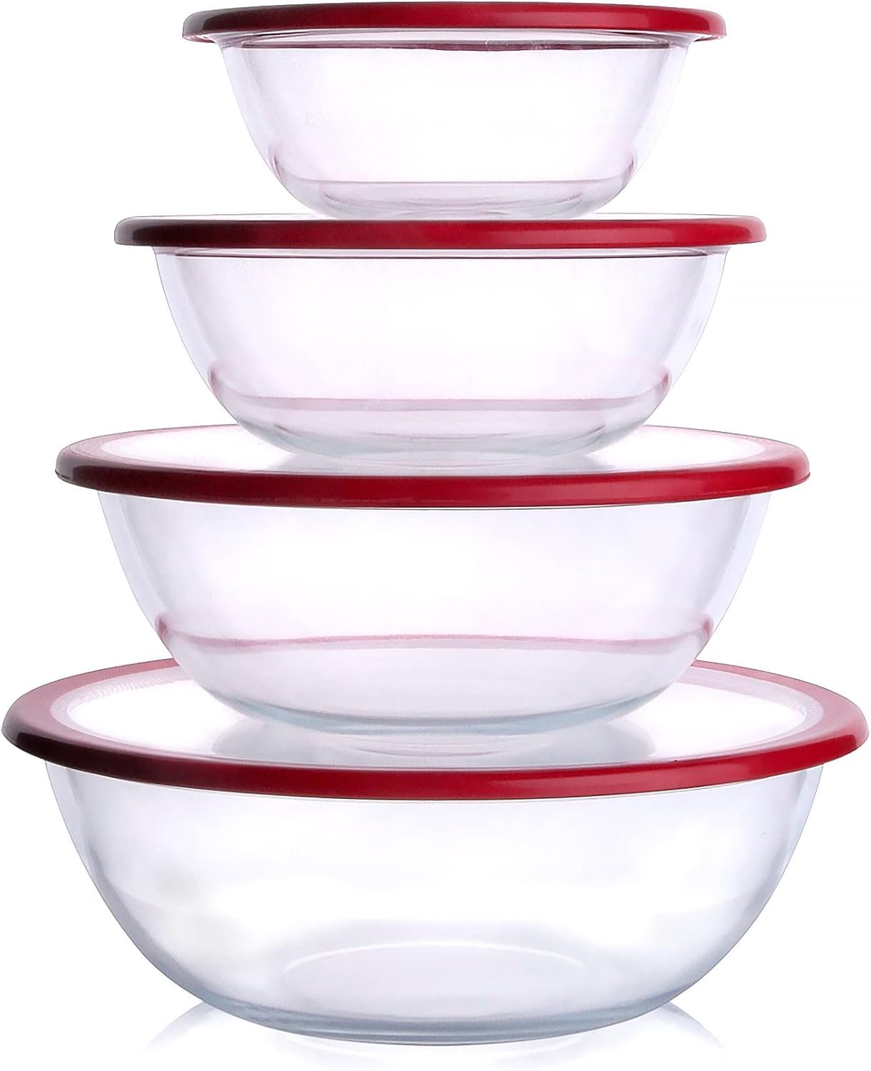 Glass Mixing Bowl with Lids Set, 8 PCS Glass Salad Bowls for oven. Microwave and Dishwasher Safe (0.7L + 1.3L + 2L + 3L)