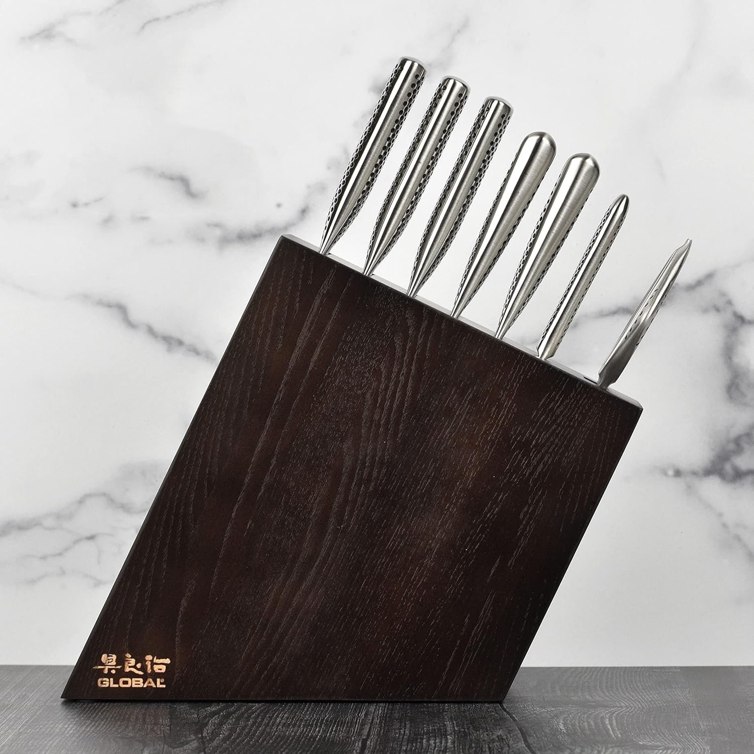 - 7 Slot Ash Wood Knife Block with Dark Walnut Finish