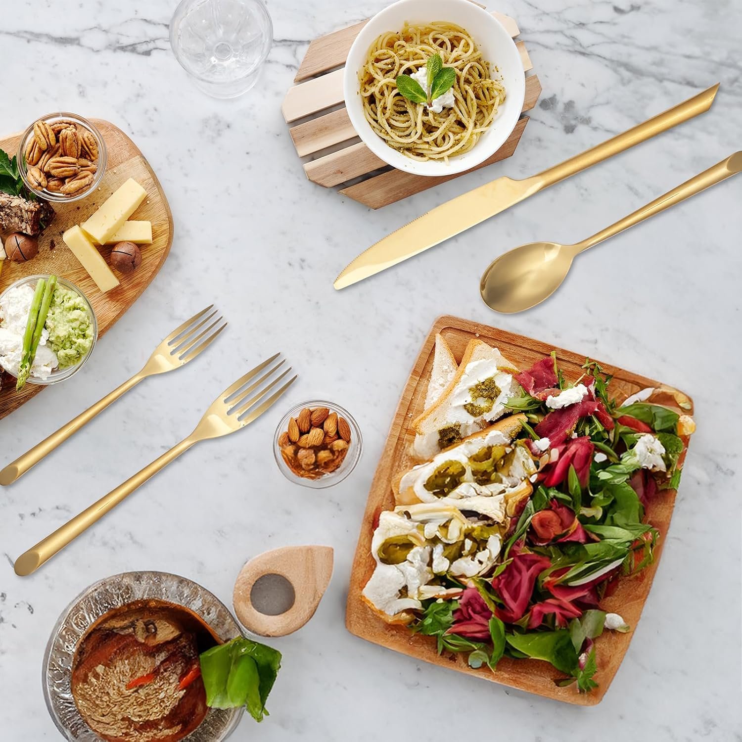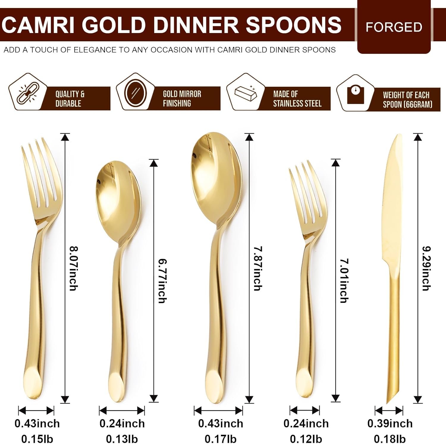The utensil sets silverware is made from 18/0 stainless steel, using advanced hot forging technology, the overall strong, not easy to rust. The surface is made of advanced titanium gold process and mirror polished.