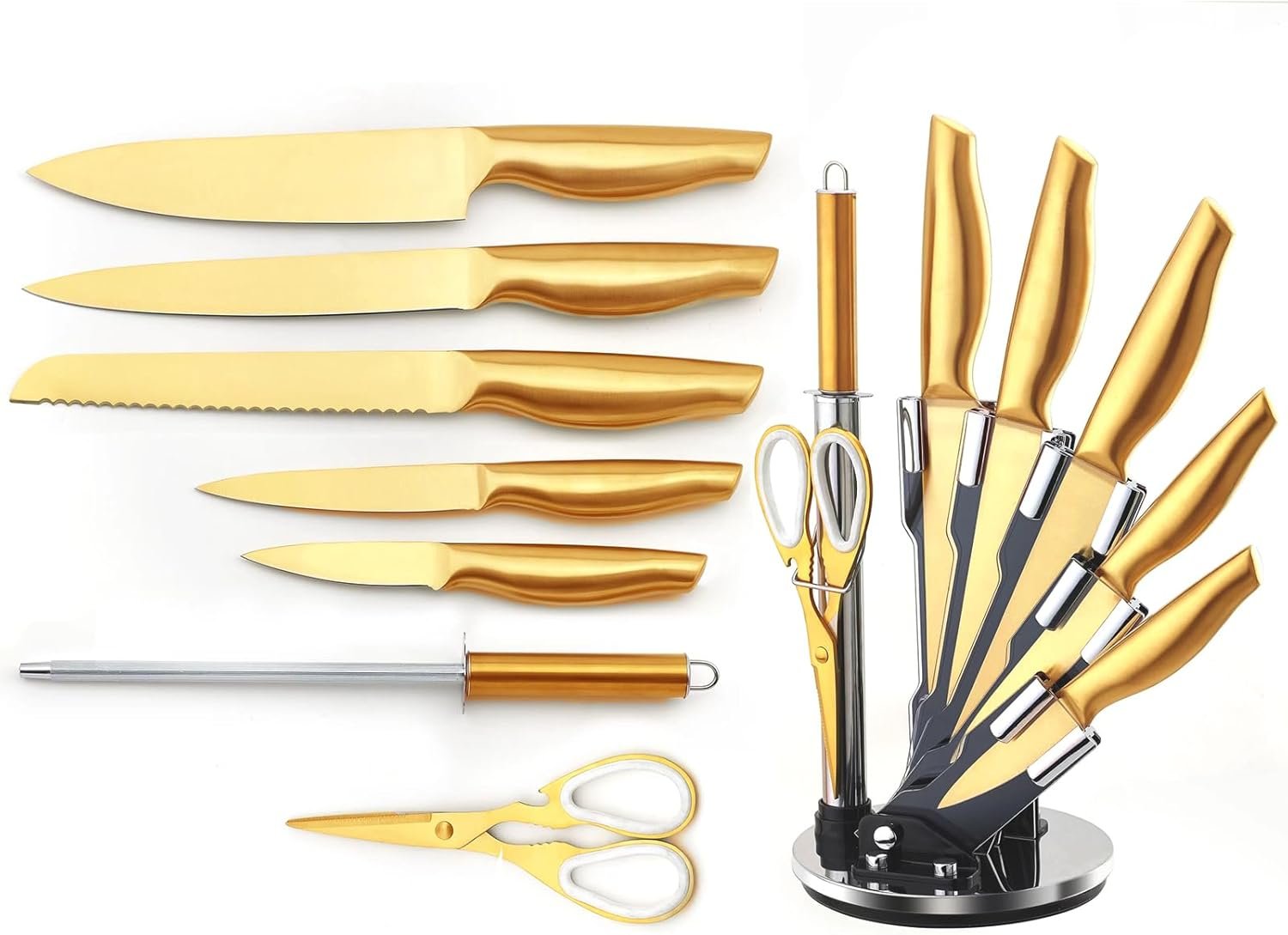 Be the first to review “Gold Knife Set With Acrylic Block, 8 Pieces Titanium-Coated Dishwasher Safe Stainless Steel Gold Kitchen Knife Sets,Non Stick Non Rust Chef Knife Set,Gift” Cancel reply