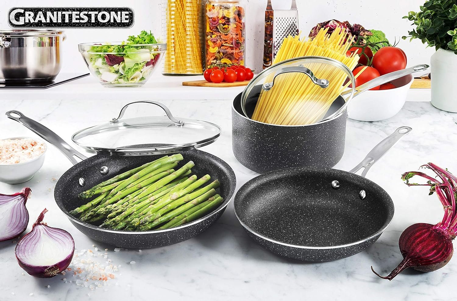 Granitestone Original 5-Piece Nonstick Cookware Set, Scratch-Resistant Pots and Pans, Granite-coated Anodized Aluminum, Dishwasher-Safe, PFOA-Free Kitchenware As Seen On TV
