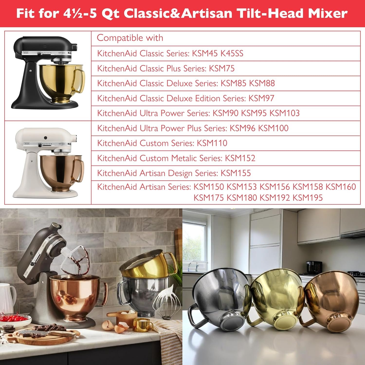 - Perfect for KitchenAid stand mixers, compatible with most 4.5 to 5 quart models