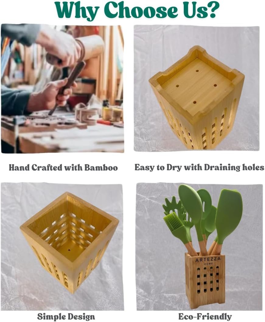 The included bamboo holder adds a touch of natural elegance and organization to your kitchen. It’s not just for utensils – you can reuse it as a modern organizer for your desk, kitchen tools, or art supplies. The smooth, sustainable design of the holder makes it a $20+ value included in your set.