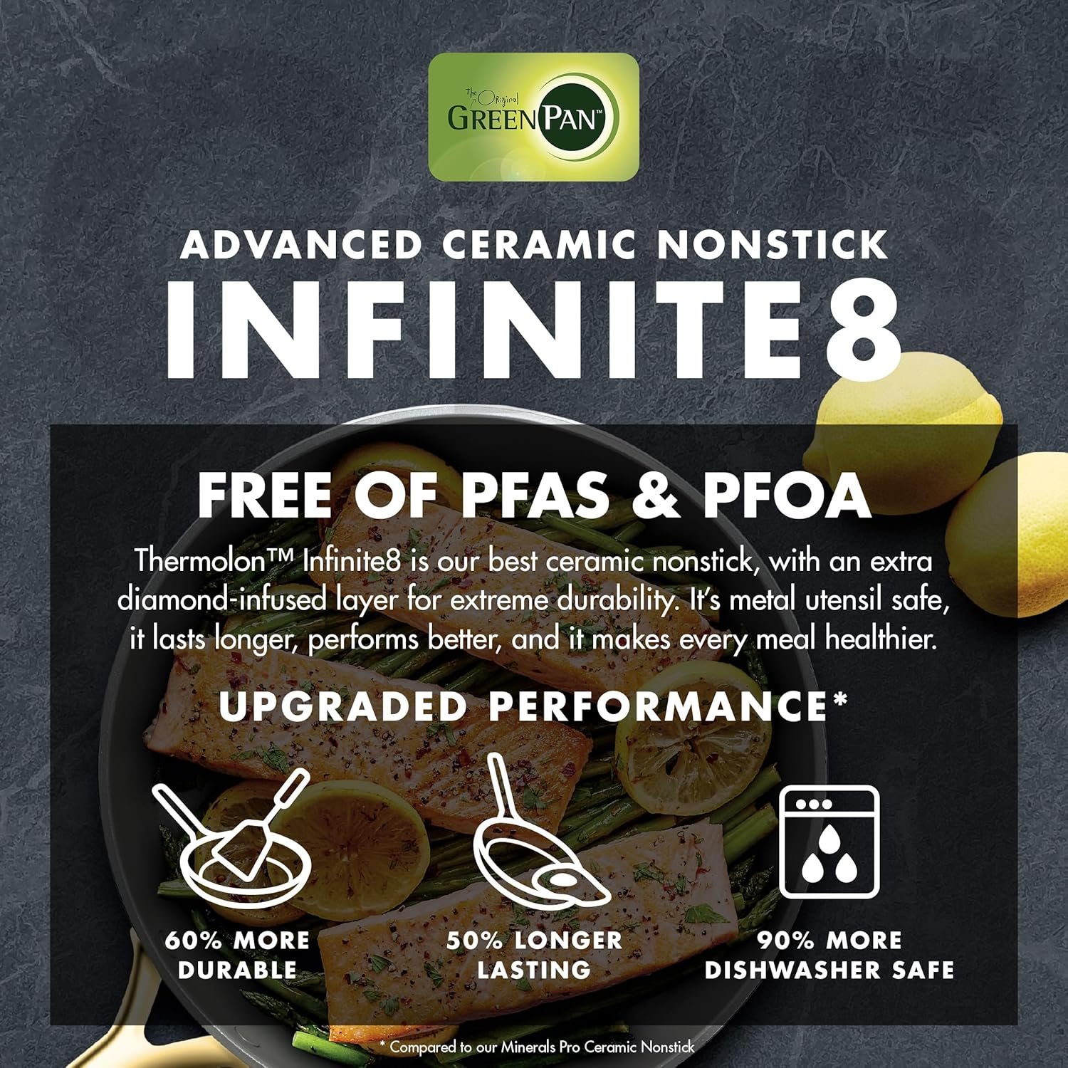 - Infinite8: the most advanced ceramic nonstick coating with layers of diamonds for extraordinary performance and durability