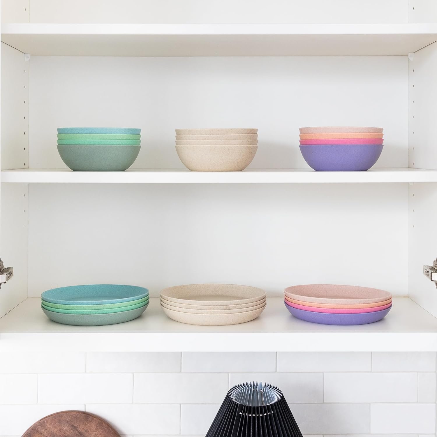 Our eco dinnerware is made from wheat straw, a sustainable material that has a smaller carbon footprint than traditional plastic. It is also fully shatterproof and unbreakable, making it perfect for families with kids. The material is 100% BPA-free and non-toxic, ensuring that your food is safe and healthy.