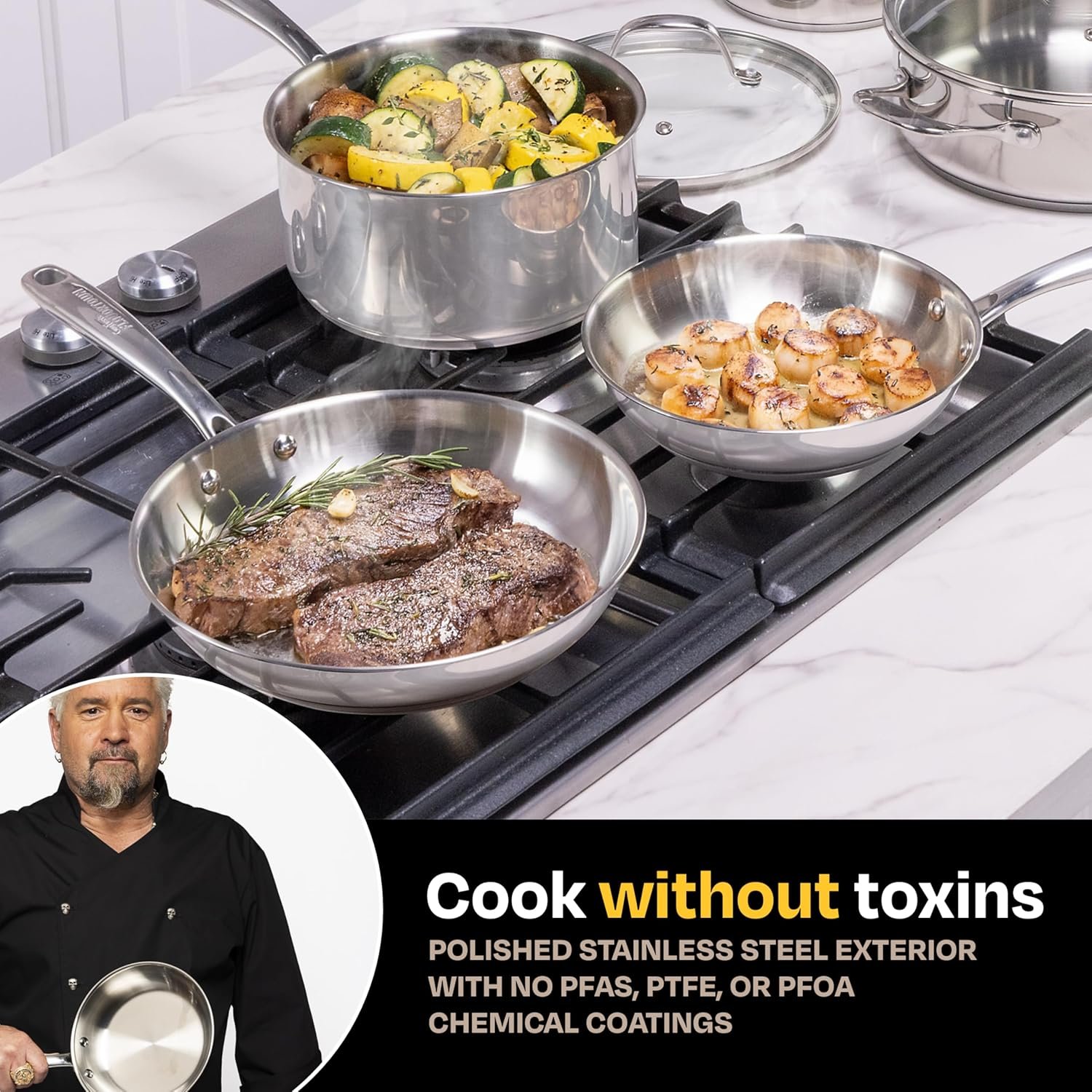 Home Kitchen Cookware Sets Guy Fieri’s Flavortown 10-Piece Stainless Steel Cookware Set – Includes Frying Pans, Saucepans, Saute Pan and Stock Pot – Pots and Pans, Oven-Safe up to 500F
