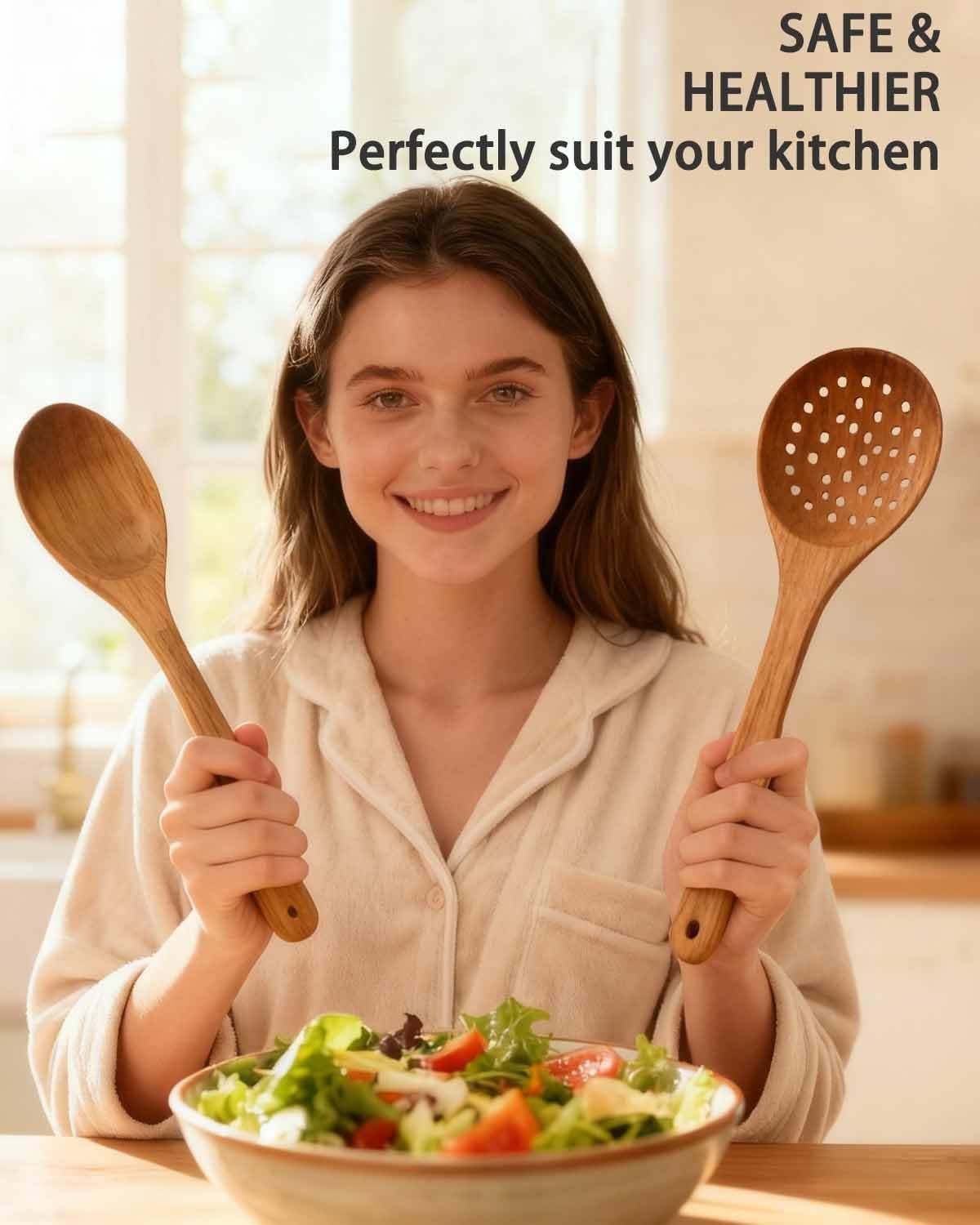 - Complete set: 10-piece wooden utensil collection for versatile cooking needs