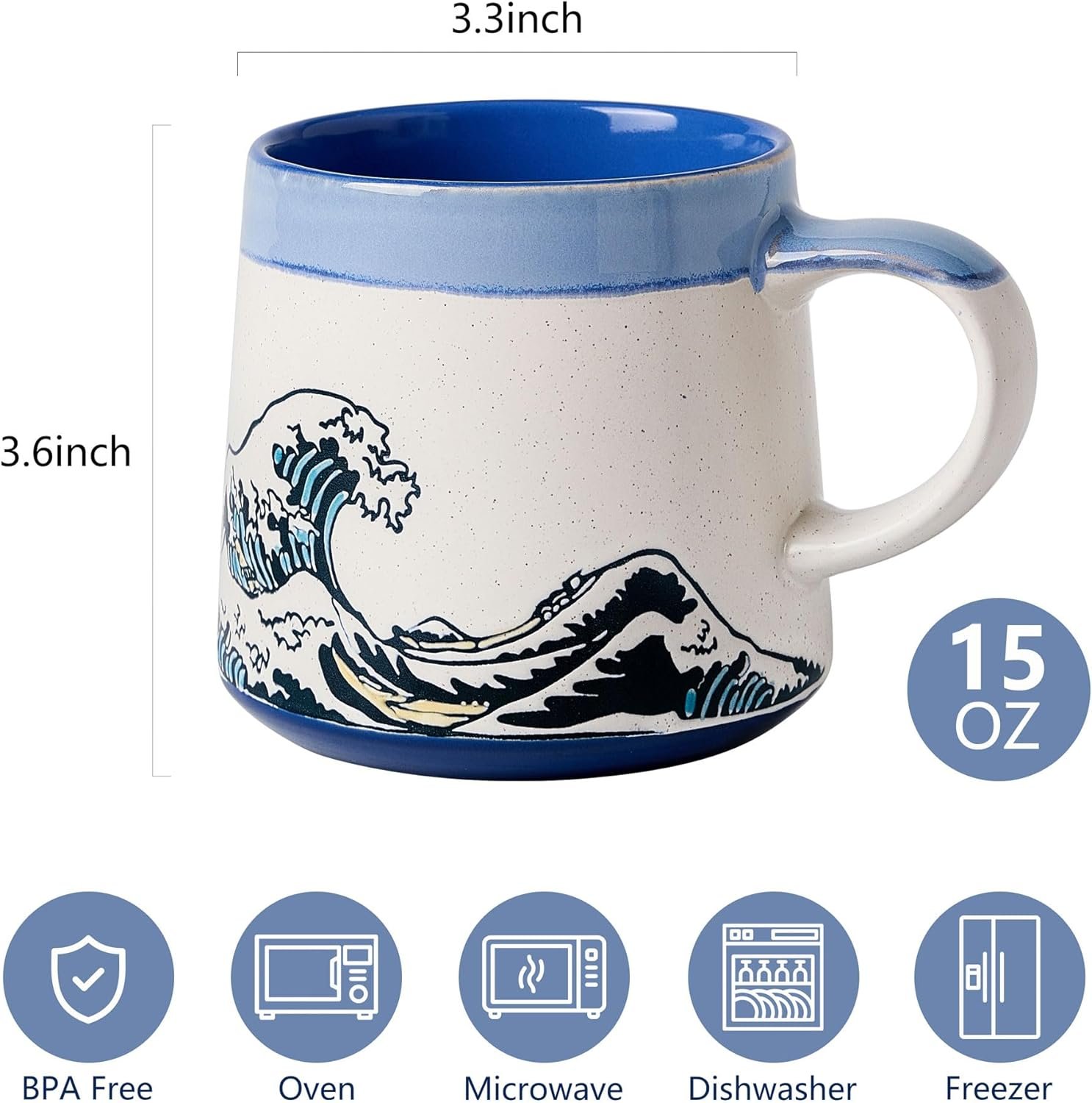 - Authentic Japanese Design: Enjoy your coffee in style with our handcrafted ceramic mugs featuring traditional Ukiyo-e artwork of Great Wave.