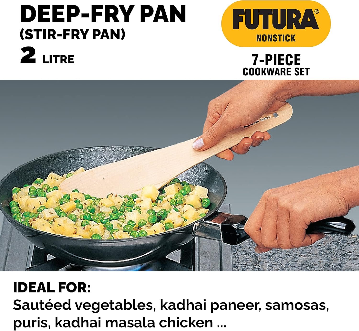 - Comprehensive Set: Includes two Frying Pans, a Deep-Fry Pan (or Stir-Fry Pan), a Saucepan with a glass lid, and a Curry Pan (or Saute Pan) with a glass lid.