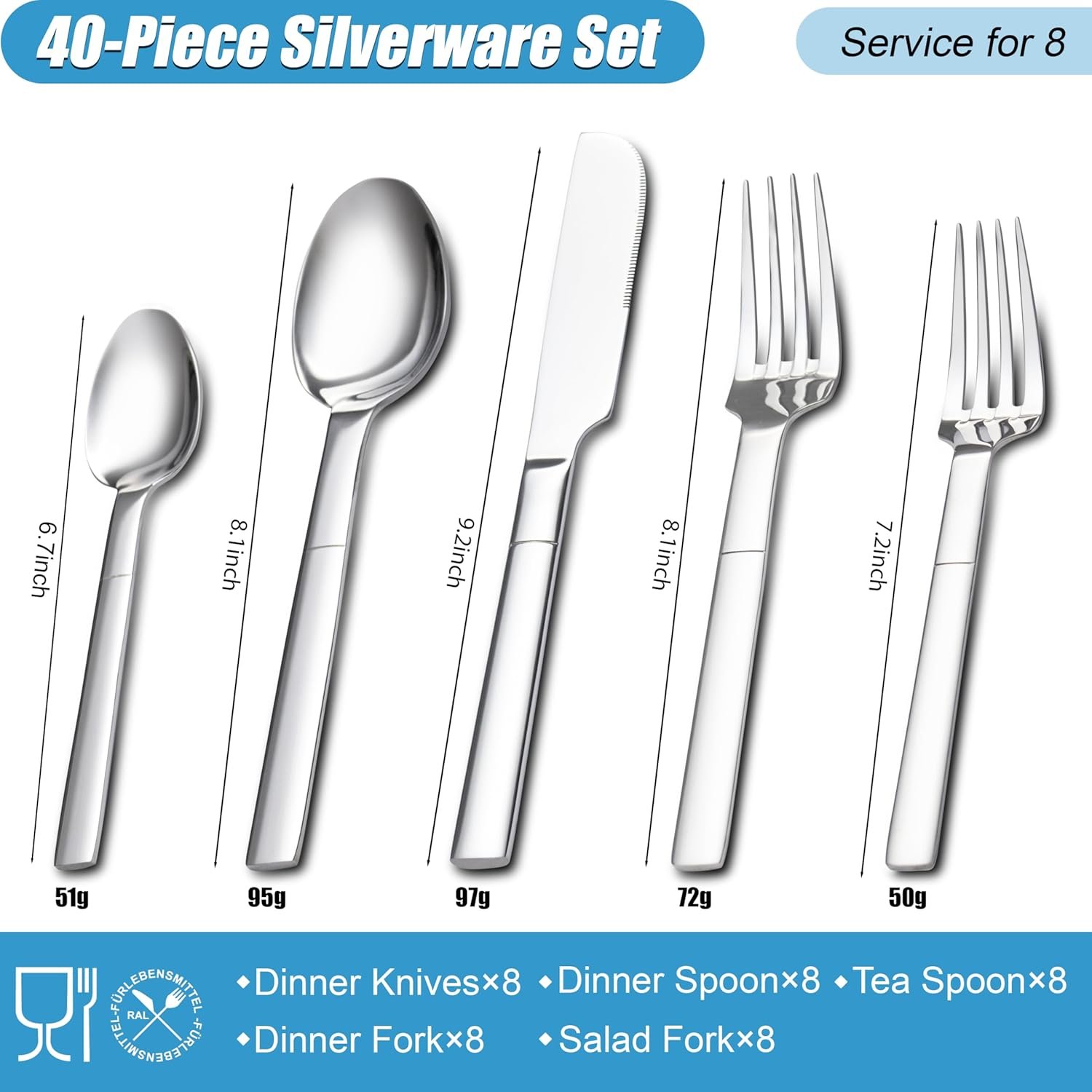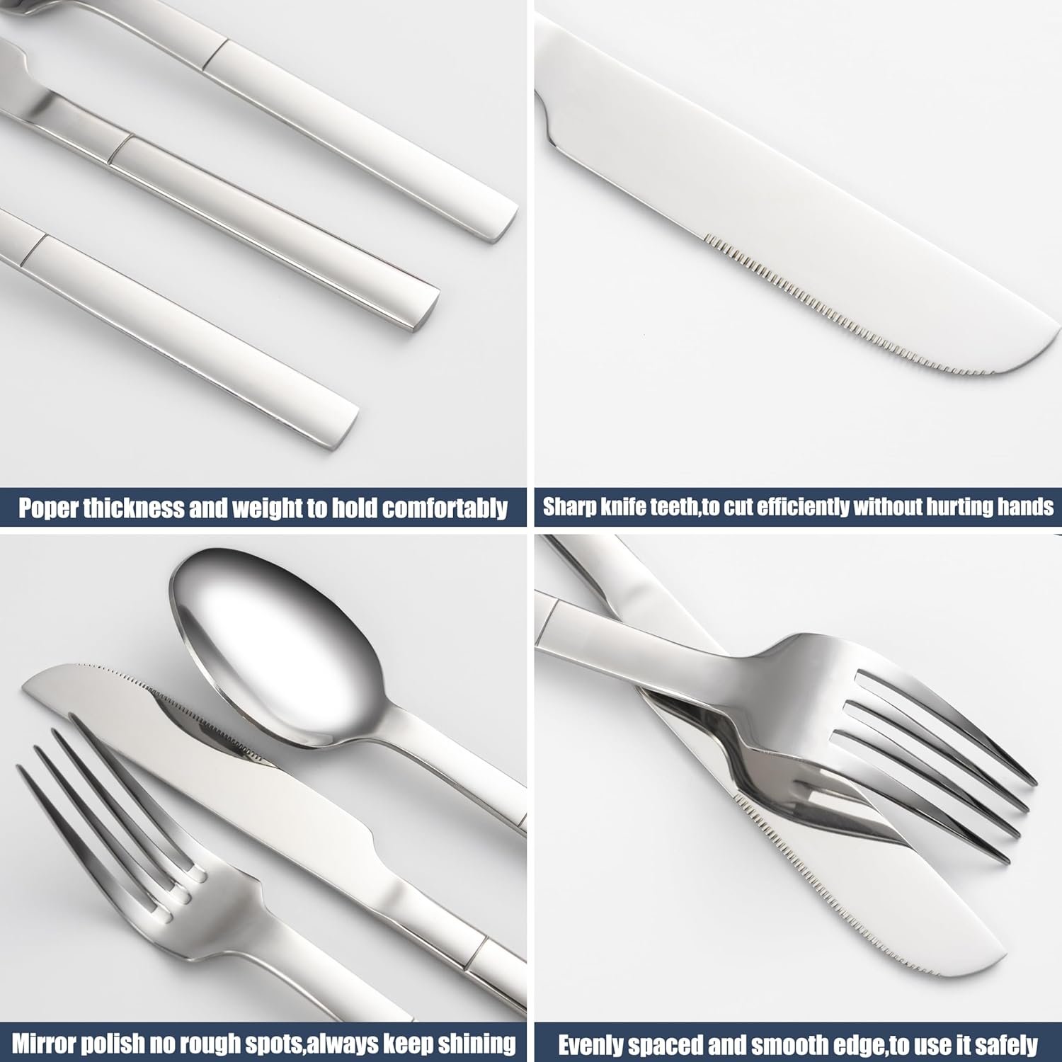 • High-Quality Material: The use of food-grade stainless steel ensures the flatware set is healthy and durable.